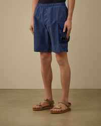 Cargo swim shorts crafted in Flatt Nylon, an emerized opaque nylon with light resin on the reverse side, featuring Lens detail. Garment dyed. Mixed with CS II. Inner mesh. Regular fit. - Adjustable drawstring waistband - Side pockets - Cargo flap snap pocket with Lens detail - Inner mesh - Garment dyed - Regular fit CARE & COMPOSITION Care - Wash max 30°C - Mild process - Do not bleach - Do not tumble dry - Do not iron - Do not dry clean - Line dry in the shade - Wash separately - Remove detachable accessories before washing Composition - External fabric: 100% Polyamide / Nylon - Lining: 100% Polyamide / Nylon - Coating: 100% Polyurethanic resin - Secondary fabric: 100% Polyamide / Nylon SIZE & FITTING - Fits true to size, take your normal size - Model is 189 cm-6' 2" / 88-91 cm waist and is wearing a size 48 PRODUCT PASSPORT PRODUCT - Weaving: Korea - Dyeing: Italy - Confection: Bulgaria - Releases plastic microfibers into the environment during washing PACKAGING - Minimum percentage of recycled materials 70%