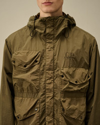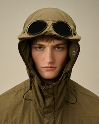 Goggle jacket crafted in Flatt Nylon, an emerized opaque nylon with light resin on the reverse side. Garment dyed anti-drop treated. Regular fit. - Adjustable Goggle hood - Hidden two-way zip fastening with flap snap closure - Chest embroidered logo detail - Front flap snap pockets - Adjustable snap cuffs - Garment dyed - Regular fit CARE & COMPOSITION CARE - Wash max 30°C - Mild process - Do not bleach - Do not tumble dry - Ironing maximum temperature 110°C - without steam - Do not dry clean - Line dry - Wash separately - Wash inside out - Do not iron decorations - Remove detachable accessories before washing COMPOSITION - External fabric: 100% Polyamide / Nylon - Lining: 100% Polyamide / Nylon SIZE & FITTING - Fits true to size, take your normal size - Model is 186 cm-6' 1" / 98-103 cm chest and is wearing a size L