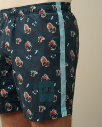 Knee-long swim shorts constructed with an inner mesh and an elasticated drawstring waistband, featuring an all-over placed Sponged print, a single back pocket and a printed logo detail. Crafted from Flatt Nylon, an emerized - or sanded - nylon. The resulting fabric is softer and has a matte finish, similar to any fabric that has been worn and washed many times. Regular fit. - All-over Sponged print - Elasticated drawstring waistband - Single back pocket - Printed logo detail at front - Inner mesh - Regular fit CARE & COMPOSITION CARE - Wash max 30°C - Mild process - Do not bleach - Do not tumble dry - Do not iron - Do not dry clean - Wash separately - Wash inside out COMPOSITION - External fabric: 79% Cotton, 21% Polyamide / Nylon - Lining: 100% Polyester - Secondary fabric: 79% Cotton, 21% Polyamide / Nylon SIZE & FITTING - Fits true to size, take your normal size - Model is 188 cm-6' 2"/ 88-91 cm waist and is wearing a size 48