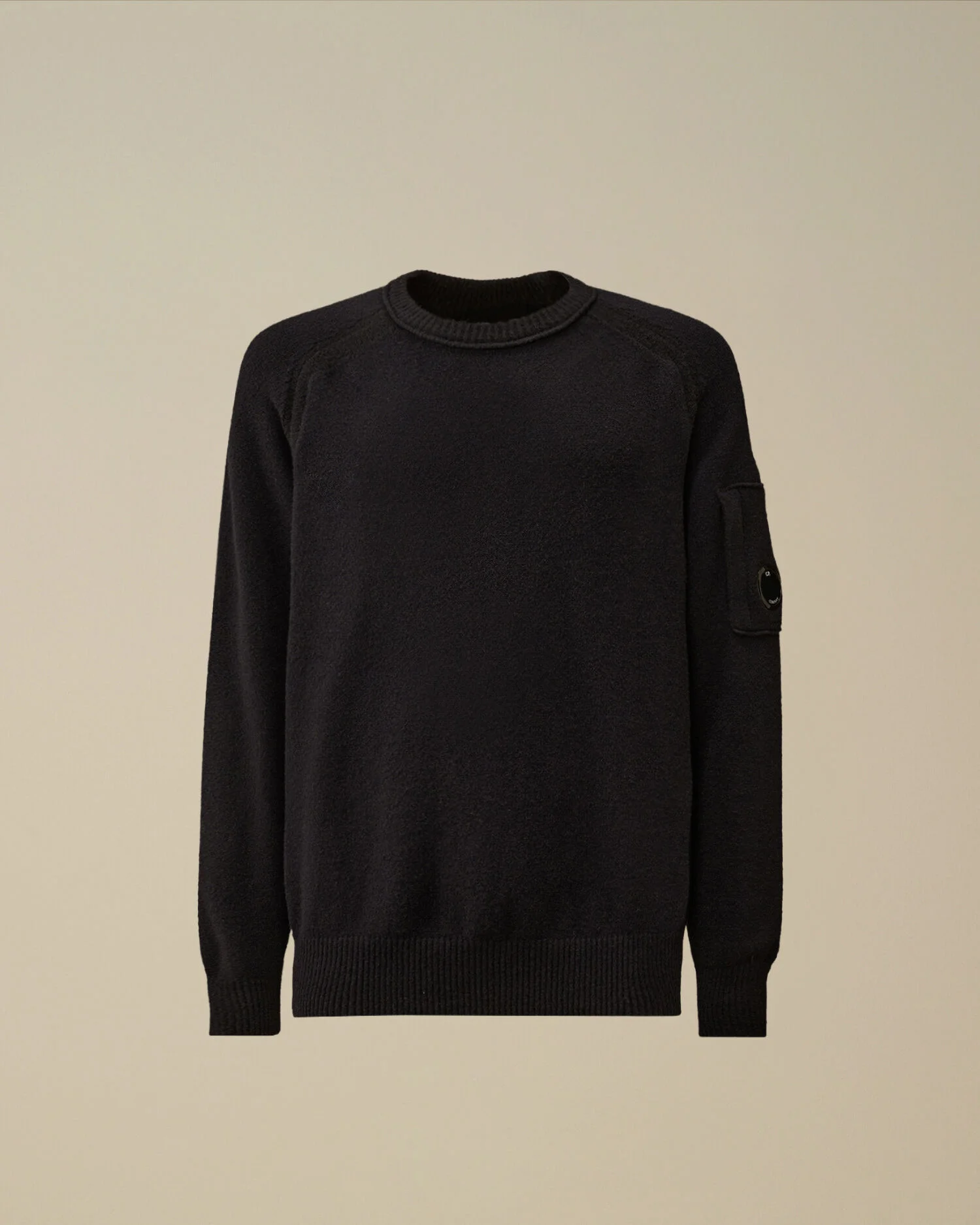 Crewneck sweater crafted in vanise lambswool with contrast Polyester chenille. The knit features C.P. Company’s iconic Lens. Finished with ribbed cuffs and hem. Gauge 7. Regular fit. - Ribbed crewneck - Lens detail - Contrast stitching - Ribbed cuffs and hem - 7 Gauge knit - Regular fit CARE & COMPOSITION Care - Hand wash - Do not bleach - Do not tumble dry - Ironing maximum temperature 110°C - without steam - Do not dry clean - Flat drip dry in the shade - Wash inside out - Remove detachable accessories before washing Composition - External fabric: 70% Polyamide / Nylon, 29% Wool, 1% Other fibres SIZE & FITTING - Fits true to size, take your normal size - Model is 186 cm-6' 1" / 98-103 cm chest and is wearing a size L PRODUCT PASSPORT PRODUCT - Weaving: Italy - Dyeing: Italy - Confection: Tunisia - Releases plastic microfibers into the environment during washing PACKAGING - Minimum percentage of recycled materials 70%