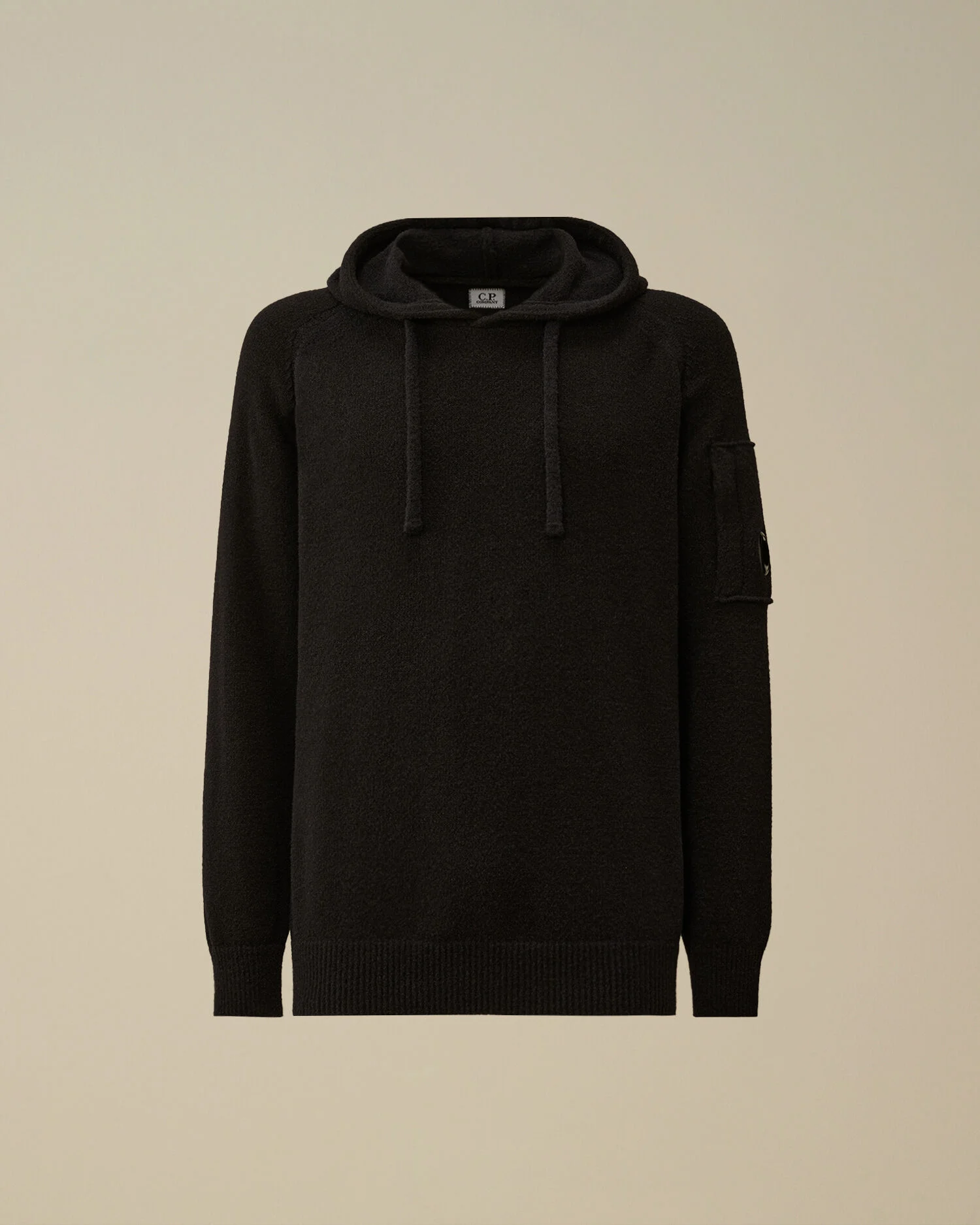 Hooded sweater crafted in vanise lambswool with contrast Polyester chenille. The knit features an adjustable hood, and C.P. Company’s iconic Lens. Finished with ribbed cuffs and hem. Gauge 7. Regular fit. - Adjustable hood - Contrast stitching - Lens detail - Ribbed cuffs and hem - 7 Gauge knit - Regular fit CARE & COMPOSITION Care - Hand wash - Do not bleach - Do not tumble dry - Ironing maximum temperature 110°C - without steam - Do not dry clean - Flat drip dry in the shade - Wash inside out - Remove detachable accessories before washing Composition - External fabric: 70% Polyamide / Nylon, 29% Wool, 1% Other fibres SIZE & FITTING - Fits true to size, take your normal size - Model is 186 cm-6' 1" / 98-103 cm chest and is wearing a size L PRODUCT PASSPORT PRODUCT - Weaving: Italy - Dyeing: Italy - Confection: Croatia - Releases plastic microfibers into the environment during washing PACKAGING - Minimum percentage of recycled materials 70%
