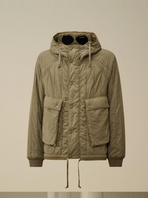 Goggle padded jacket crafted in the garment dyed version of twill fabric from the Liner family. The jacket features C.P. Company’s iconic Goggle hood, a hidden two-way full zip fastening with a flap snap closure, and front flap snap pockets with side openings. Finished with raglan sleeves, ribbed cuffs, and an adjustable drawstring hem. Wadding padded. Regular fit. - Adjustable Goggle hood - Hidden two-way full zip fastening with flap snap closure - Front flap snap pockets with side opening - Raglan sleeves - Ribbed cuffs - Adjustable drawstring hem - Garment dyed - Wadding padded - Regular fit CARE & COMPOSITION Care - Wash max 30°C - Mild process - Do not bleach - Do not tumble dry - Ironing maximum temperature 110°C - without steam - Do not dry clean - Line dry - Wash separately - Remove detachable accessories before washing Composition - External fabric: 100% Polyamide / Nylon - Lining: 100% Polyamide / Nylon - Padding (Fiber): 100% Polyester SIZE & FITTING - Fits true to size, take your normal size - Model is 186 cm-6' 1" / 98-103 cm chest and is wearing a size L PRODUCT PASSPORT PRODUCT - Weaving: China - Dyeing: China - Confection: China - Releases plastic microfibers into the environment during washing PACKAGING - Minimum percentage of recycled materials 70%