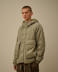 Goggle padded jacket crafted in the garment dyed version of twill fabric from the Liner family. The jacket features C.P. Company’s iconic Goggle hood, a hidden two-way full zip fastening with a flap snap closure, and front flap snap pockets with side openings. Finished with raglan sleeves, ribbed cuffs, and an adjustable drawstring hem. Wadding padded. Regular fit. - Adjustable Goggle hood - Hidden two-way full zip fastening with flap snap closure - Front flap snap pockets with side opening - Raglan sleeves - Ribbed cuffs - Adjustable drawstring hem - Garment dyed - Wadding padded - Regular fit CARE & COMPOSITION Care - Wash max 30°C - Mild process - Do not bleach - Do not tumble dry - Ironing maximum temperature 110°C - without steam - Do not dry clean - Line dry - Wash separately - Remove detachable accessories before washing Composition - External fabric: 100% Polyamide / Nylon - Lining: 100% Polyamide / Nylon - Padding (Fiber): 100% Polyester SIZE & FITTING - Fits true to size, take your normal size - Model is 186 cm-6' 1" / 98-103 cm chest and is wearing a size L PRODUCT PASSPORT PRODUCT - Weaving: China - Dyeing: China - Confection: China - Releases plastic microfibers into the environment during washing PACKAGING - Minimum percentage of recycled materials 70%
