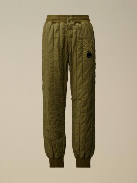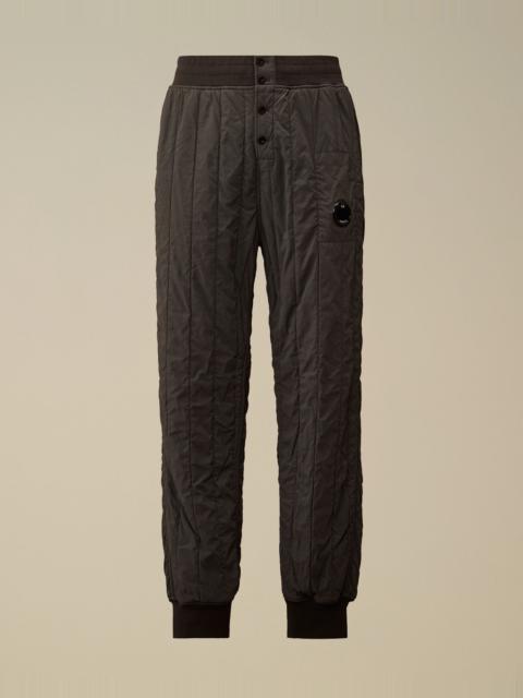 Padded sweatpants crafted in the garment dyed version of twill fabric from the Liner family. The pants feature C.P. Company’s iconic Lens, an adjustable drawstring waistband with button fastening, and side pockets. Finished with a back button pocket and ribbed hems. Wadding padded. Regular fit. - Adjustable drawstring waistband with button fastening - Lens detail - Side pockets - Back button pocket - Ribbed hems - Garment dyed - Wadding padded - Regular fit CARE & COMPOSITION Care - Wash max 30°C - Mild process - Do not bleach - Do not tumble dry - Ironing maximum temperature 110°C - without steam - Do not dry clean - Line dry - Wash separately - Do not soak - Remove detachable accessories before washing Composition - External fabric: 100% Polyamide / Nylon - Lining: 100% Polyamide / Nylon - Padding (Fiber): 100% Polyester SIZE & FITTING - Fits true to size, take your normal size - Model is 186 cm-6' 1"/ 88-91 cm waist and is wearing a size 48 PRODUCT PASSPORT PRODUCT - Weaving: China - Dyeing: China - Confection: China - Releases plastic microfibers into the environment during washing PACKAGING - Minimum percentage of recycled materials 70%