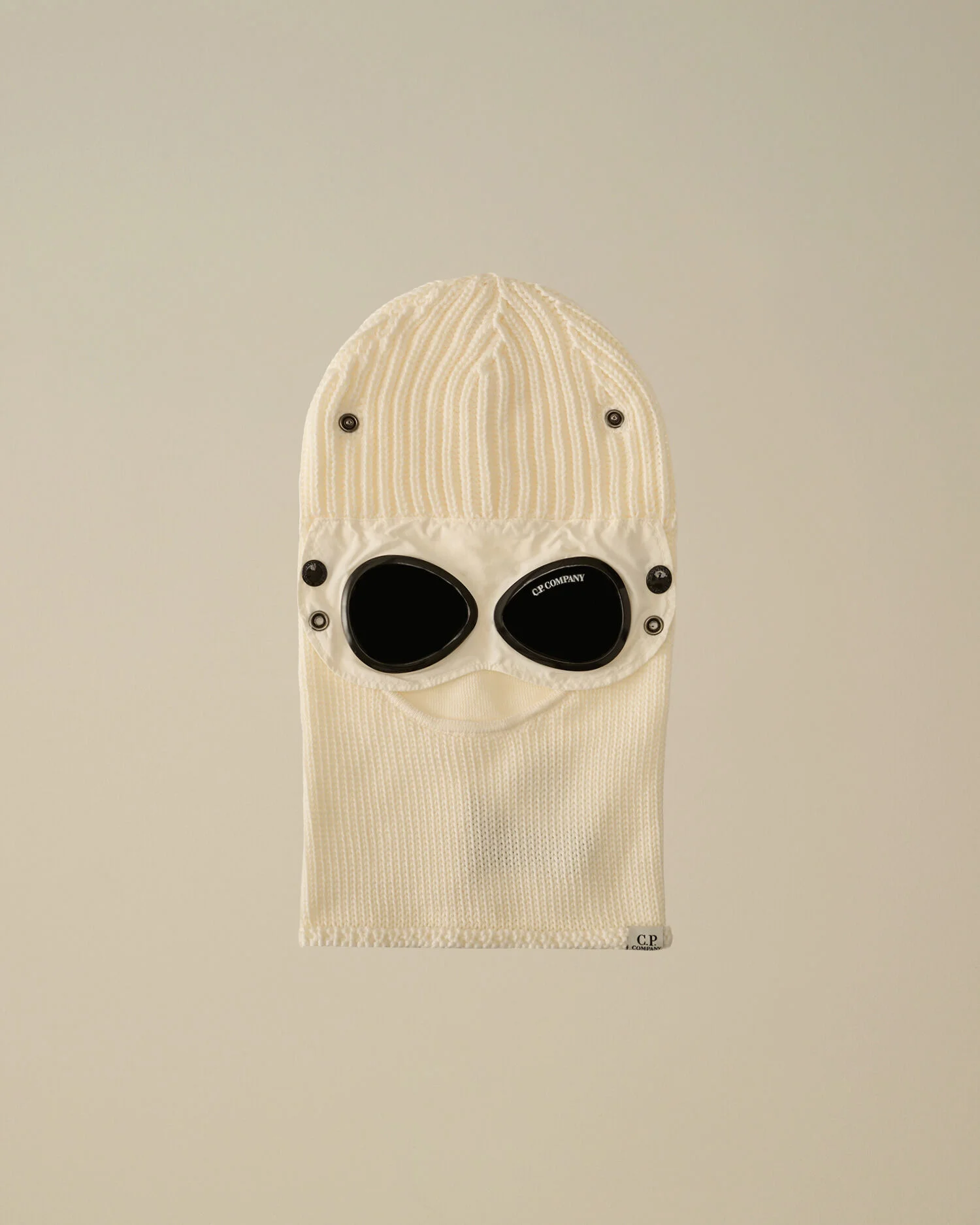 Balaclava crafted in Extrafine Merino Wool, offering softness and warmth. The balaclava features a ribbed knit, a woven logo label, and C.P. Company’s iconic Goggle lenses. - Ribbed knit - Woven logo label - Goggle Lenses CARE & COMPOSITION Care - Hand wash - Do not bleach - Do not tumble dry - Ironing maximum temperature 110°C - without steam - Dry cleaning in tetrachloroethene - mild process - Dry flat - Wash separately - Wash inside out - Do not soak - Remove detachable accessories before washing - Do not expose the garment to direct sunlight or artificial light Composition - External fabric: 100% Wool - Secondary fabric: 100% Polyamide / Nylon PRODUCT PASSPORT PRODUCT - Weaving: Italy - Dyeing: China - Confection: Italy PACKAGING - Minimum percentage of recycled materials 70%