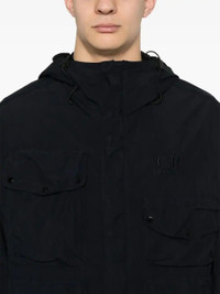 navy blue front press-stud and zip fastening drawstring hood four front flap pockets C.P. Company suggests removing any detachable accessories before washing. Size & Fit Model Measurements: Height: 1.86 m Bust/Chest: 93.0 cm Hips: 95.0 cm Waist: 71.0 cm Model wears size L Fabric and Care Designer Style ID: 18CMOW050A005991G Designer Colour: 888 BLUE Composition: Polyamide 100% Washing instructions: Machine Wash