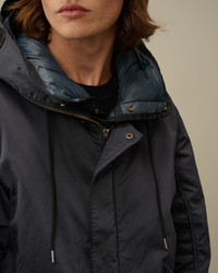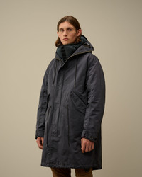 Explorer fishtail parka crafted in in Micro Kei, a soft-textured and durable nylon/polyester microfibre. Detachable down lining. Garment dyed anti-drop treated. - Adjustable Explorer hood - Detachable down lining - Hidden full zip and button fastening - Patch button pockets - Adjustable buttons cuffs - Fishtail hem on the back - Garment dyed - Regular fit CARE & COMPOSITION CARE - Wash max 30°C - Mild process - Do not bleach - Do not tumble dry - Ironing maximum temperature 110°C - without steam - Do not dry clean - Line dry - Wash inside out - Iron with a cloth between - Remove detachable accessories before washing COMPOSITION - External main fabric: 66% Polyester, 34% Polyamide / Nylon - Inner main fabric: 100% Polyamide / Nylon - Lining: 100% Polyamide / Nylon - Padding: [194gr. - 90% ] 90% Grey duck down, 10% Feather SIZE & FITTING - Fits true to size, take your normal size - Model is 186 cm-6' 1" / 98-103 cm chest and is wearing a size L