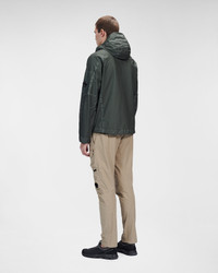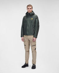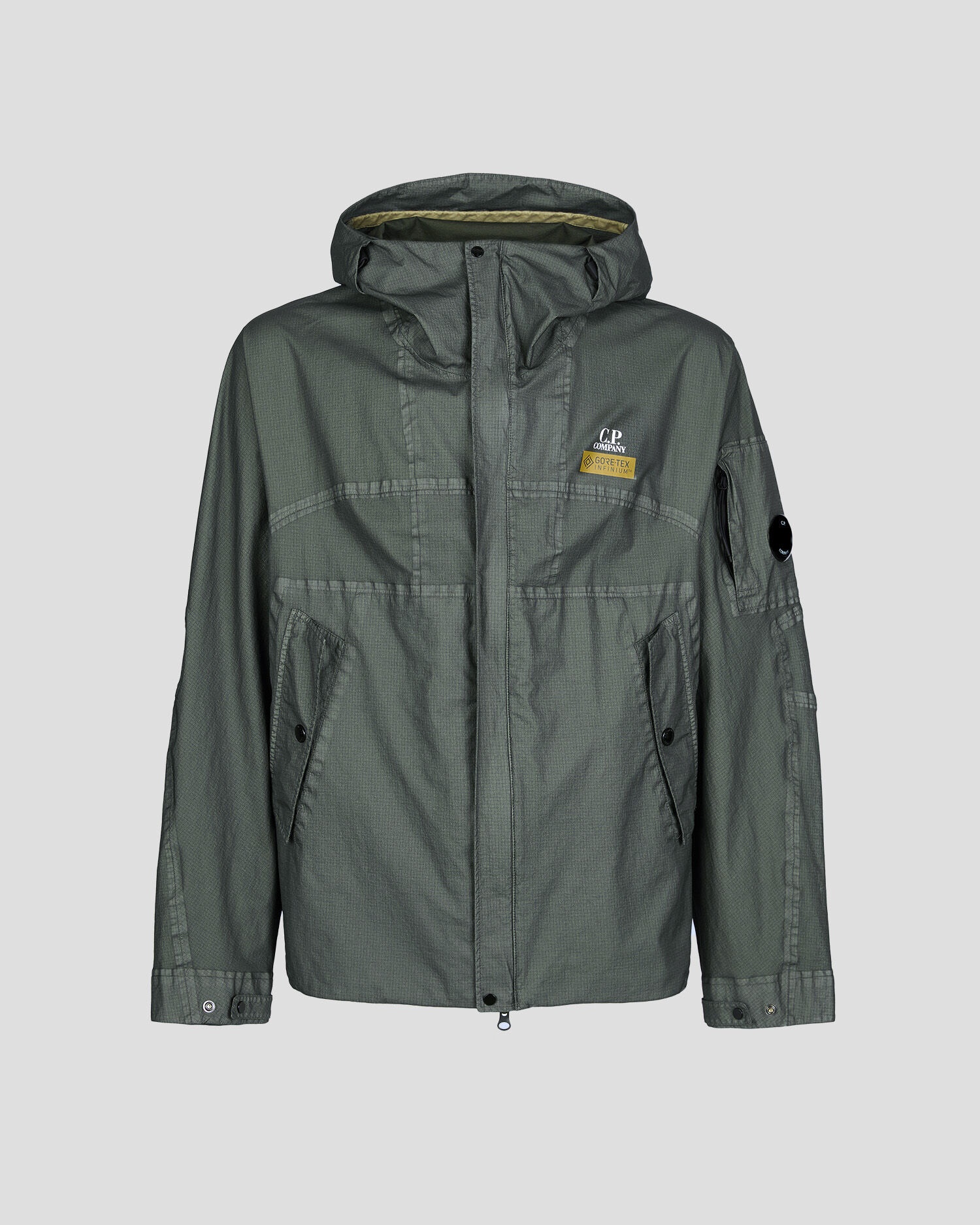 Lightweight hooded jacket in Gore G-Type, C.P. Company's garment dyed Gore-Tex ® Infinium shell. The water resistant and windproof garment features contrast taping, dual zip fastening and two vertical front pockets, adjustable cuffs, a logo detail on the chest and a Lens detail on the sleeve pocket. - Adjustable hood - Lens detail - Adjustable cuffs - Two vertical front zip pockets - Logo detail - Full zip fastening - Water resistant CARE & COMPOSITION CARE - Wash max 30°C - Mild process - Do not bleach - Do not tumble dry - Ironing maximum temperature 110°C - without steam - Do not dry clean - Line dry - Wash inside out - Iron with a cloth between - do not expose to heat - Remove detachable accessories before washing COMPOSITION - External fabric: 100% Polyamide / Nylon - Secondary fabric: 100% Polyamide / Nylon SIZE & FITTING - Fits true to size, take your normal size - Model is 186 cm-6' 1" / 98-102 cm chest and is wearing a size 50