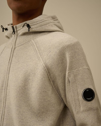 Hooded sweater crafted in Lambswool GRS. The Global Recycled Standard certifies the use of products in conformity with environmental and social criteria extended to all stages of the production chain. The knit features an adjustable hood, two-way full zip fastening, raglan sleeves, and C.P. Company’s iconic Lens. Finished with contrast stitching. Gauge 12. Regular fit. - Adjustable hood - Raglan sleeves - Contrast stitching - Two-way full zip fastening - Lens detail - 12 Gauge knit - Regular fit CARE & COMPOSITION Care - Hand wash - Do not bleach - Do not tumble dry - Ironing maximum temperature 110°C - without steam - Dry cleaning in tetrachloroethene - mild process - Flat drip dry in the shade - Remove detachable accessories before washing - Dry inside out Composition - External fabric: 80% Wool, 20% Polyamide / Nylon SIZE & FITTING - Fits true to size, take your normal size - Model is 186 cm-6' 1" / 98-103 cm chest and is wearing a size L PRODUCT PASSPORT PRODUCT - Weaving: Italy - Dyeing: Italy - Confection: Moldova - Product contains at least 50% of recycled material PACKAGING - Minimum percentage of recycled materials 70%
