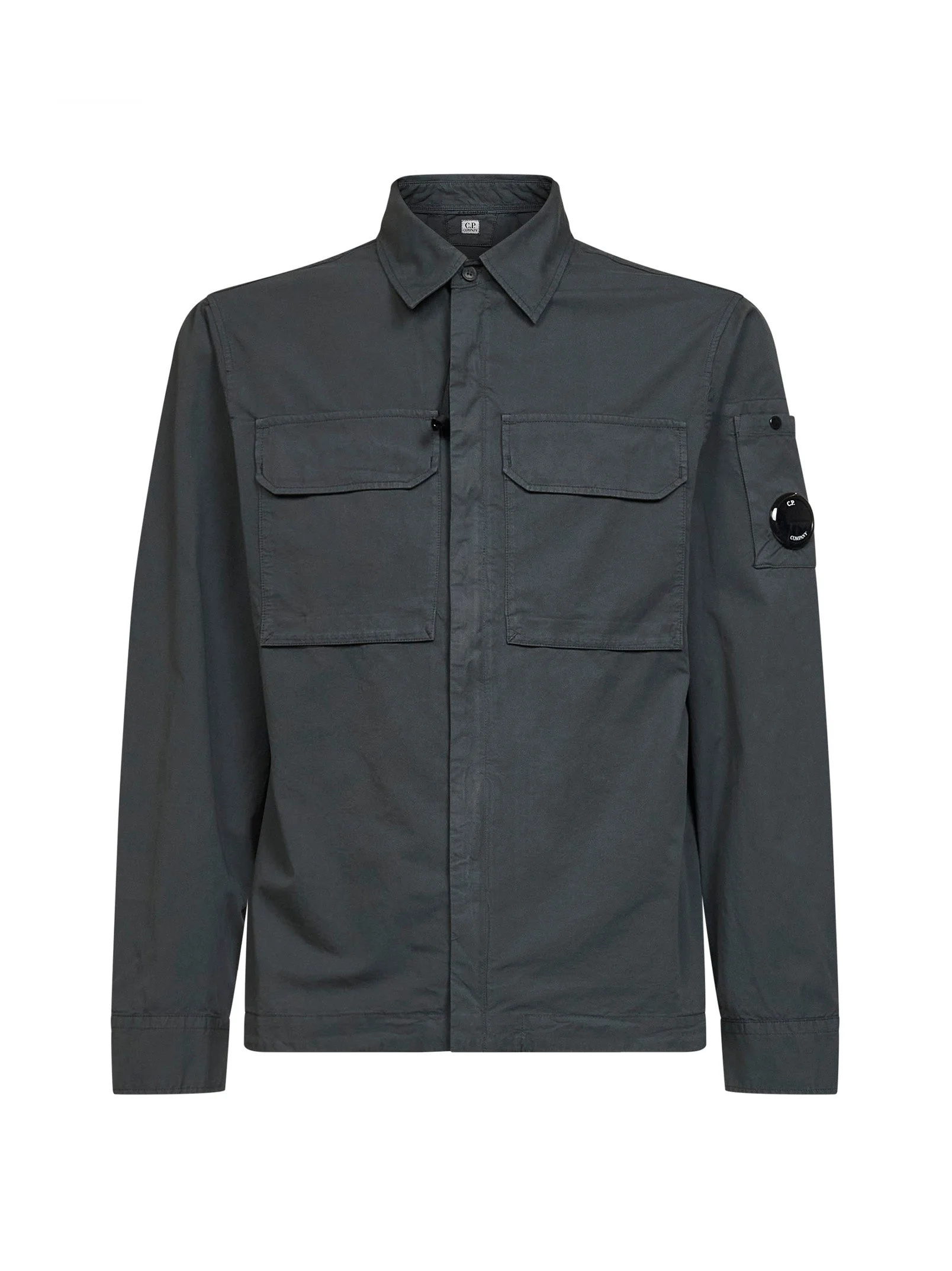 - Front covered zip closure; logoed zip puller - Classic collar - Long sleeves, adjustable buttoned cuffs - Patch pockets at chest, snap-buttoned patch pocket at left sleeve with lens detail - Straight hem - Garment-dyed model - Regular fit - Grey color - 100% cotton - Made in extra eu Natural (Veg): Cotton100 % Made in: Tunisia Season: P26 MOS156A110143G921