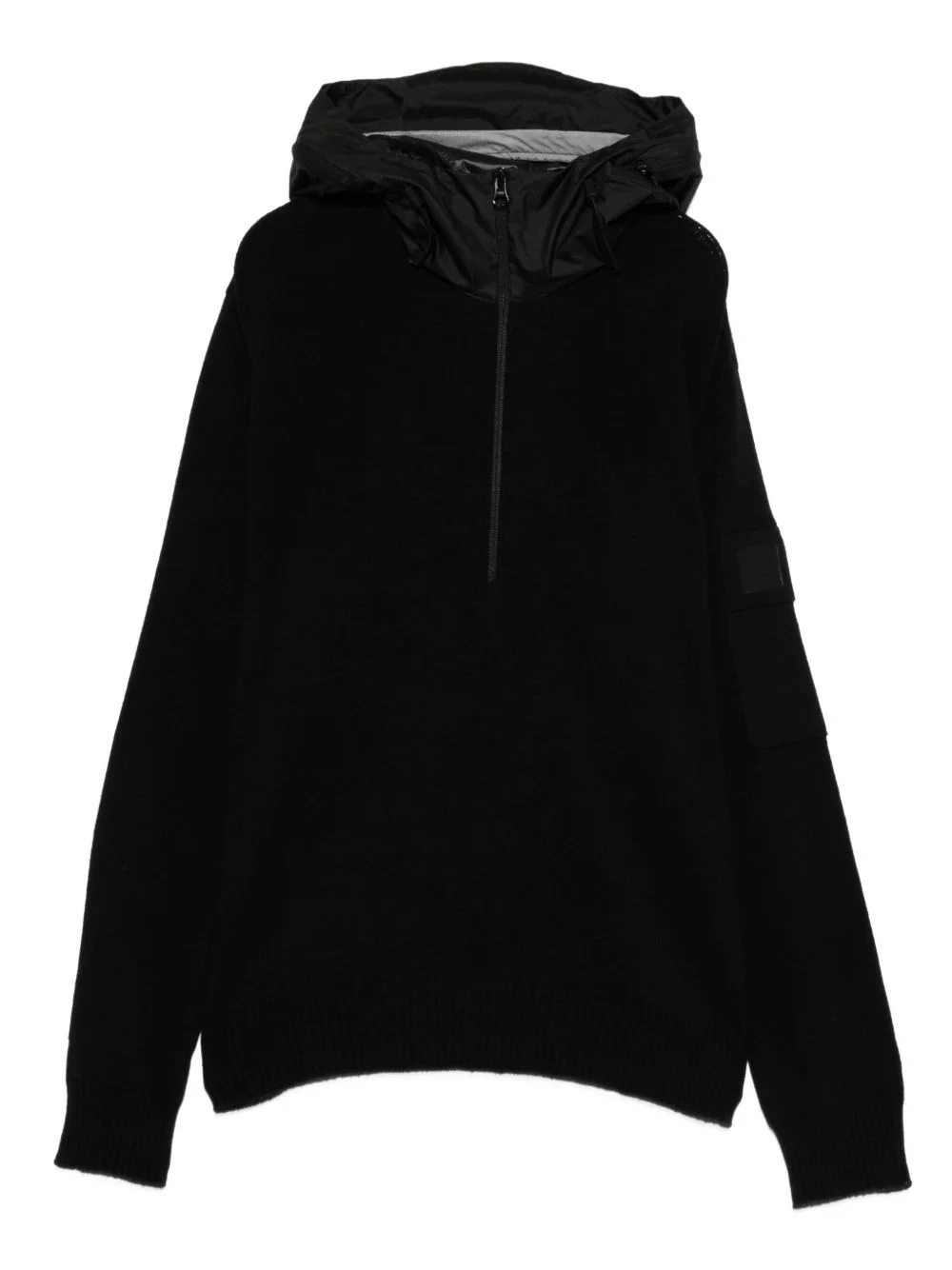 half-zip hooded jumper Highlights - Black - Half zip fastening - Hooded neckline - Ribbed cuffs - C.p. company suggests removing any detachable accessories before washing. Imported Composition Outer: Polyurethane Resin 100%, Polyamide 48%, Wool 30%, Polyester 22% Lining: Polyamide 100% SIZE & FIT Model measurements Height 6 ft 1 in(1.85 m) Bust/Chest 35.82 in(91 cm) Hips 37.79 in(96 cm) Waist 29.13 in(74 cm) Washing instructions Hand Wash