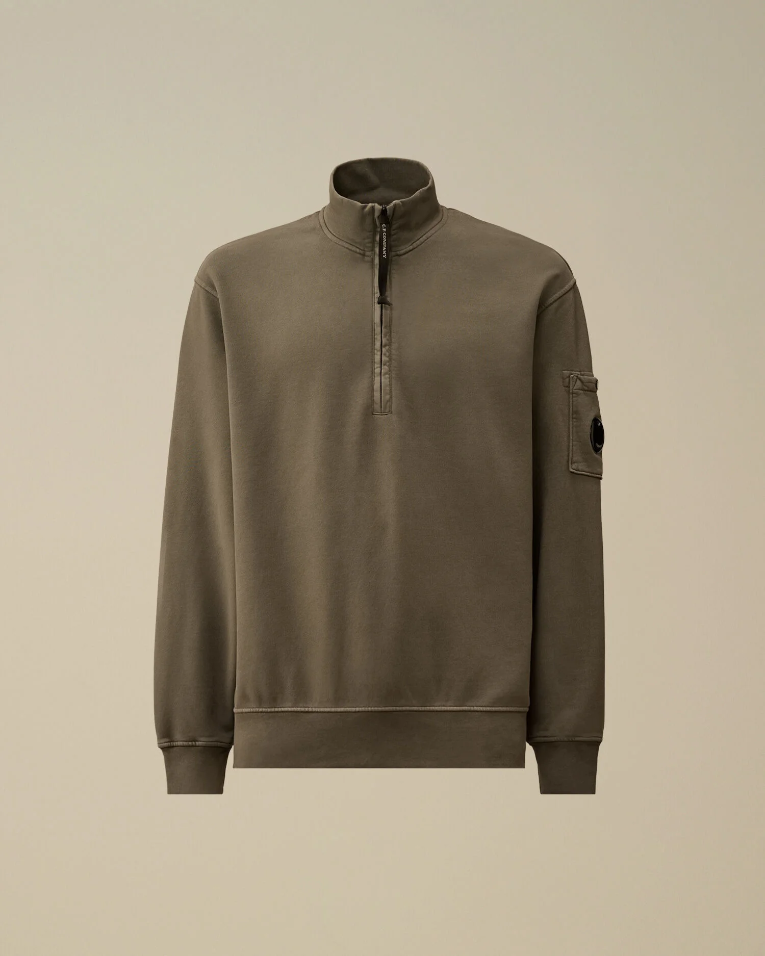Half zip sweatshirt crafted in brushed and emerized diagonal-weave gauzed fleece. The soft fabric ensures comfort and ease of movement. The sweatshirt features C.P. Company’s iconic Lens, and ribbed cuffs and hem. The Resist Dyed process uses direct dyes on garments pre-treated with cationic resin, creating an irregular colour effect that enhances texture and details. Regular fit. - Half zip fastening - Lens detail - Ribbed cuffs and hem - Resist dyed - Regular fit CARE & COMPOSITION Care - Wash max 30°C - Do not bleach - Do not tumble dry - Ironing maximum temperature 150°C - Do not dry clean - Flat dry in the shade - Wash separately - Wash with similar colours - Wash inside out - Iron inside out - Do not iron decorations - Remove detachable accessories before washing - Do not expose the garment to direct sunlight or artificial light Composition - External fabric: 100% Cotton SIZE & FITTING - Fits true to size, take your normal size - Model is 186 cm-6' 1" / 98-103 cm chest and is wearing a size L PRODUCT PASSPORT PRODUCT - Weaving: Turkiye - Dyeing: Turkiye - Confection: Turkiye PACKAGING - Minimum percentage of recycled materials 70%