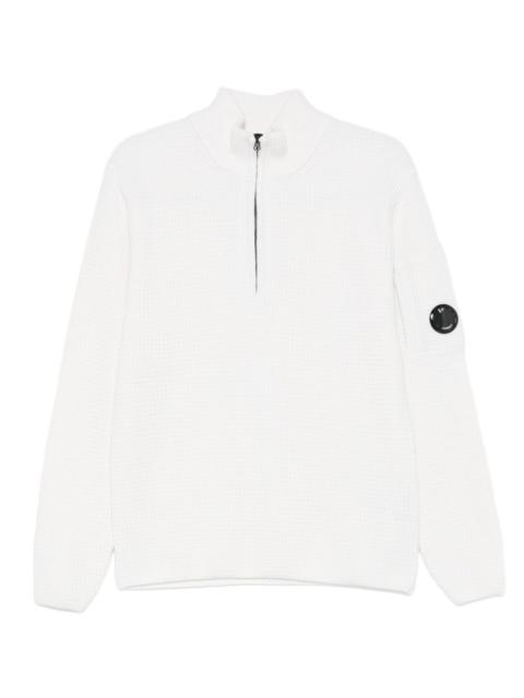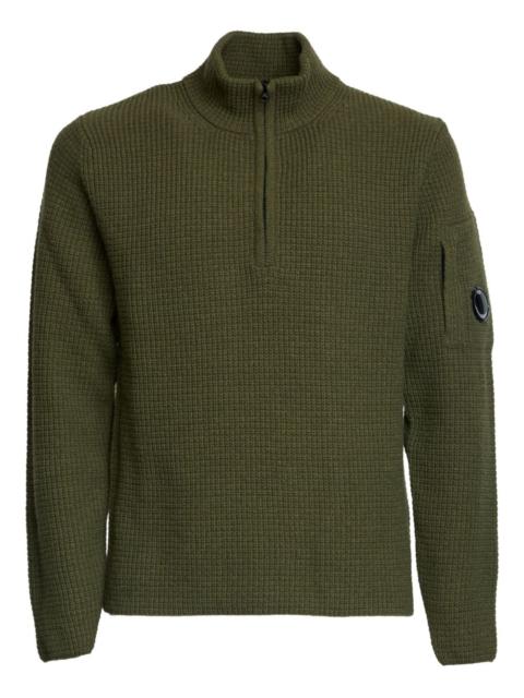high collar zip sweater Highlights - Blue - Lambswool knit - Half zip - High collar - Sleeve detail - C.p. company suggests removing any detachable accessories before washing. Imported Composition Lambs Wool 80%, Polyamide 20% Washing instructions Read Manufacturer Guidelines