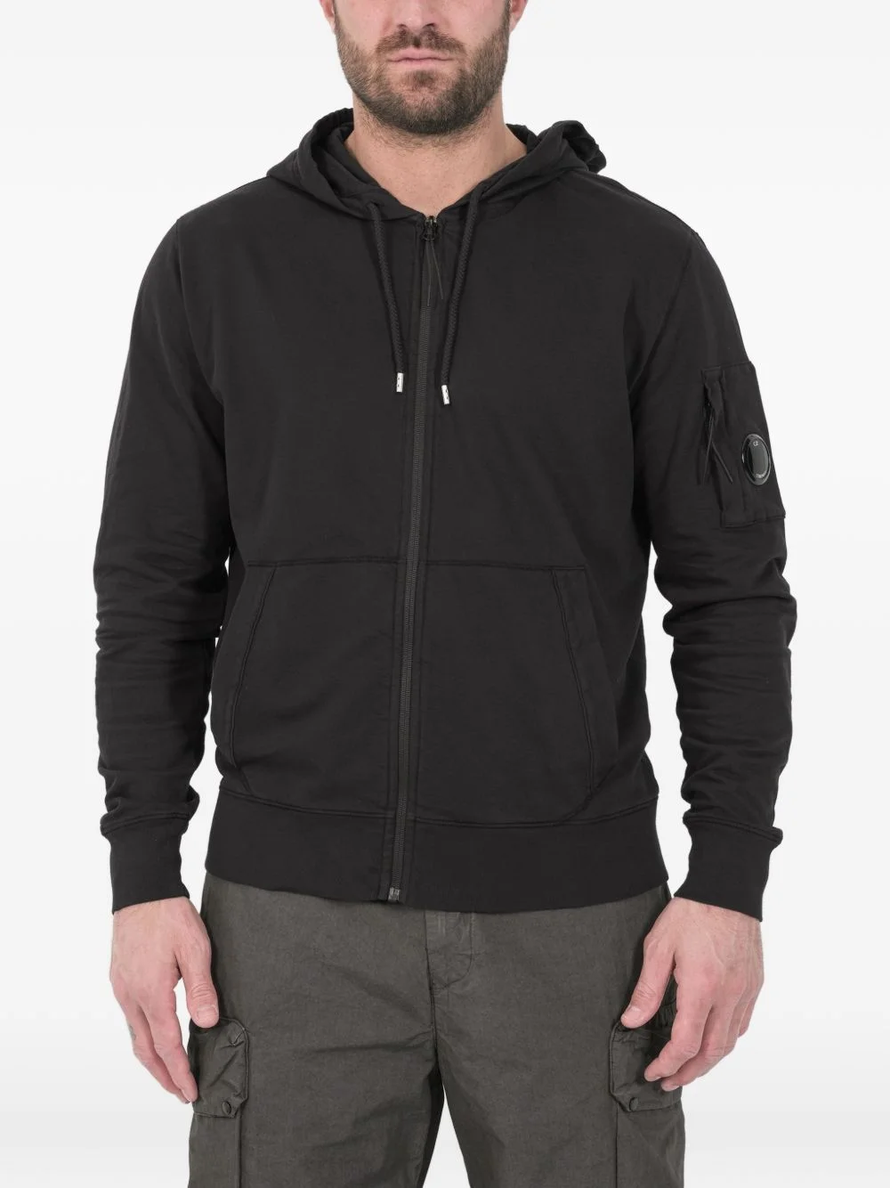 hooded zip-up jacket Highlights - Black - Hooded - Zip fastening - Pouch pocket - Lens detail - Long sleeves - C.p. company suggests removing any detachable accessories before washing. Made in Italy Composition Cotton 100% Washing instructions Machine Wash