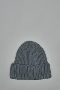 Beanie made from mid-grey ribbed knit, featuring a folded cuff and rounded crown. The close-fitting style displays pronounced vertical ribs and dense knit construction for everyday cold-weather wear. Materials: 100% Wool Color: ebony SKU: 152007 Brand style: 19CMAC742A