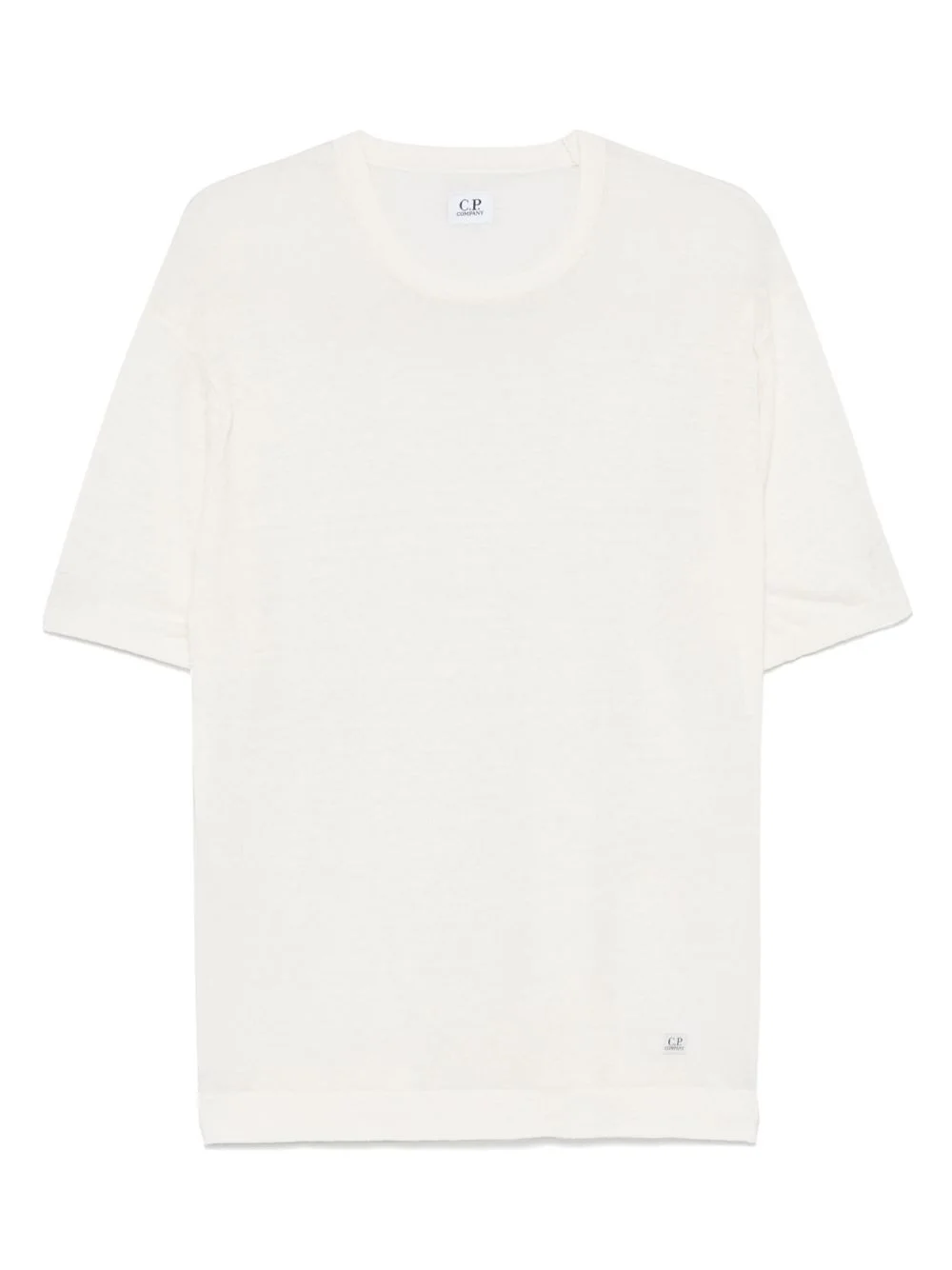knitted T-shirt Highlights - White - Crew neck - Short sleeves - Mini logo tag - C.p. company suggests removing any detachable accessories before washing. Imported Composition Linen/Flax 100% SIZE & FIT Model measurements Height 6 ft 2 in(1.87 m) Bust/Chest 36.22 in(92 cm) Hips 37 in(94 cm) Waist 27.95 in(71 cm) FittingInformation Designed for a relaxed fit, this piece allows for comfort and movement when worn Made from a midweight non-stretch fabric, this piece offers minimal elasticity when worn