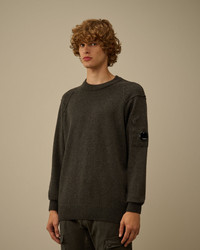 Crewneck sweater crafted in Lambswool GRS. The Global Recycled Standard certifies the use of products in conformity with environmental and social criteria extended to all stages of the production chain. The knit features C.P. Company’s iconic Lens, contrast stitching and ribbed cuffs and hem. Gauge 7. Regular fit. - Ribbed crewneck - Lens detail - Contrast stitching - Ribbed cuffs and hem - 7 Gauge knit - Regular fit CARE & COMPOSITION Care - Hand wash - Do not bleach - Do not tumble dry - Ironing maximum temperature 110°C - without steam - Dry cleaning in tetrachloroethene - mild process - Flat drip dry in the shade - Remove detachable accessories before washing - Dry inside out Composition - External fabric: 80% Wool, 20% Polyamide / Nylon SIZE & FITTING - Fits true to size, take your normal size - Model is 186 cm-6' 1" / 98-103 cm chest and is wearing a size L PRODUCT PASSPORT PRODUCT - Weaving: Italy - Dyeing: Italy - Confection: Moldova - Product contains at least 50% of recycled material PACKAGING - Minimum percentage of recycled materials 70%