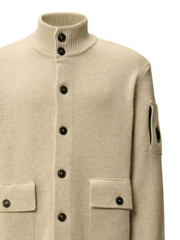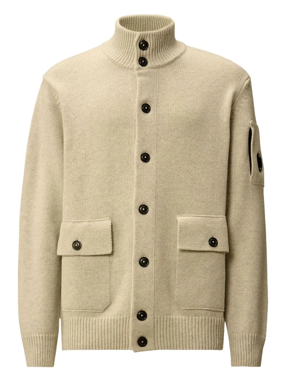 high-neck cardigan Highlights - Cream - High neck - Button closure - Two patch pockets - C.p. company suggests removing any detachable accessories before washing. Imported Composition Cotton 100% Washing instructions Read Manufacturer Guidelines