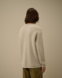 Crewneck sweater crafted in Lambswool GRS*. The Global Recycled Standard certifies the use of products in conformity with environmental and social criteria extended to all stages of the production chain. The knit features an embroidered logo detail on the left wrist. Gauge 3. Boxy fit.*Lambswool items in the colour Gauze White are not produced using GRS-certified yarn. - Ribbed crewneck - Embroidered logo detail on left wrist - 3 Gauge knit - Boxy fit CARE & COMPOSITION Care - Hand wash - Do not bleach - Do not tumble dry - Ironing maximum temperature 110°C - without steam - Dry cleaning in tetrachloroethene - mild process - Flat drip dry in the shade - Do not iron decorations - Dry inside out Composition - External fabric: 80% Wool, 20% Polyamide / Nylon SIZE & FITTING - Fits true to size, take your normal size - Model is 186 cm-6' 1" / 98-103 cm chest and is wearing a size L PRODUCT PASSPORT PRODUCT - Weaving: Italy - Dyeing: Italy - Confection: Moldova - Product contains at least 50% of recycled material PACKAGING - Minimum percentage of recycled materials 70%