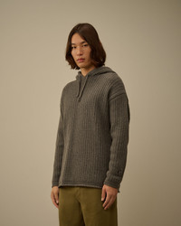 Hooded sweater crafted in Lambswool GRS. The Global Recycled Standard certifies the use of products in conformity with environmental and social criteria extended to all stages of the production chain. The knit features an adjustable hood and an embroidered logo detail on the left wrist. Gauge 3. Boxy fit. - Adjustable hood - Embroidered logo detail on left wrist - 3 Gauge knit - Boxy fit CARE & COMPOSITION Care - Hand wash - Do not bleach - Do not tumble dry - Ironing maximum temperature 110°C - without steam - Dry cleaning in tetrachloroethene - mild process - Flat drip dry in the shade - Do not iron decorations - Dry inside out Composition - External fabric: 80% Wool, 20% Polyamide / Nylon SIZE & FITTING - Fits true to size, take your normal size - Model is 186 cm-6' 1" / 98-103 cm chest and is wearing a size L PRODUCT PASSPORT PRODUCT - Weaving: Italy - Dyeing: Italy - Confection: Moldova - Product contains at least 50% of recycled material PACKAGING - Minimum percentage of recycled materials 70%