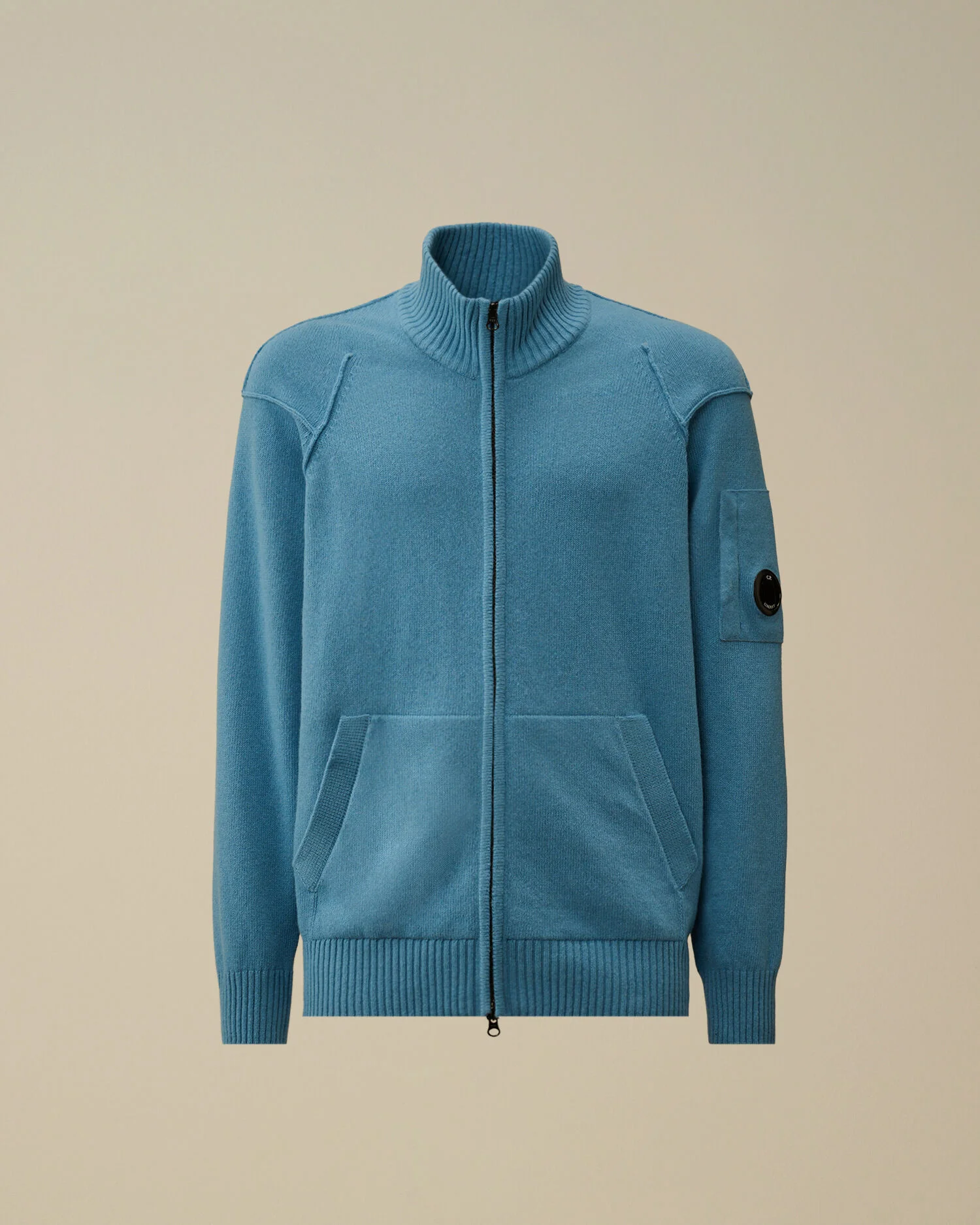 Full zip sweater crafted in Lambswool GRS. The Global Recycled Standard certifies the use of products in conformity with environmental and social criteria extended to all stages of the production chain. The knit features C.P. Company’s iconic Lens, contrast stitching and a kangaroo pocket. Finished with ribbed cuffs and hem. Gauge 7. Regular fit. - Ribbed neck - Two-way full zip fastening - Lens detail - Contrast stitching - Kangaroo pocket - Ribbed cuffs and hem - 7 Gauge knit - Regular fit CARE & COMPOSITION Care - Hand wash - Do not bleach - Do not tumble dry - Ironing maximum temperature 110°C - without steam - Dry cleaning in tetrachloroethene - mild process - Flat drip dry in the shade - Remove detachable accessories before washing - Dry inside out Composition - External fabric: 80% Wool, 20% Polyamide / Nylon SIZE & FITTING - Fits true to size, take your normal size - Model is 186 cm-6' 1" / 98-103 cm chest and is wearing a size L PRODUCT PASSPORT PRODUCT - Weaving: Italy - Dyeing: Italy - Confection: Moldova - Product contains at least 50% of recycled material PACKAGING - Minimum percentage of recycled materials 70%