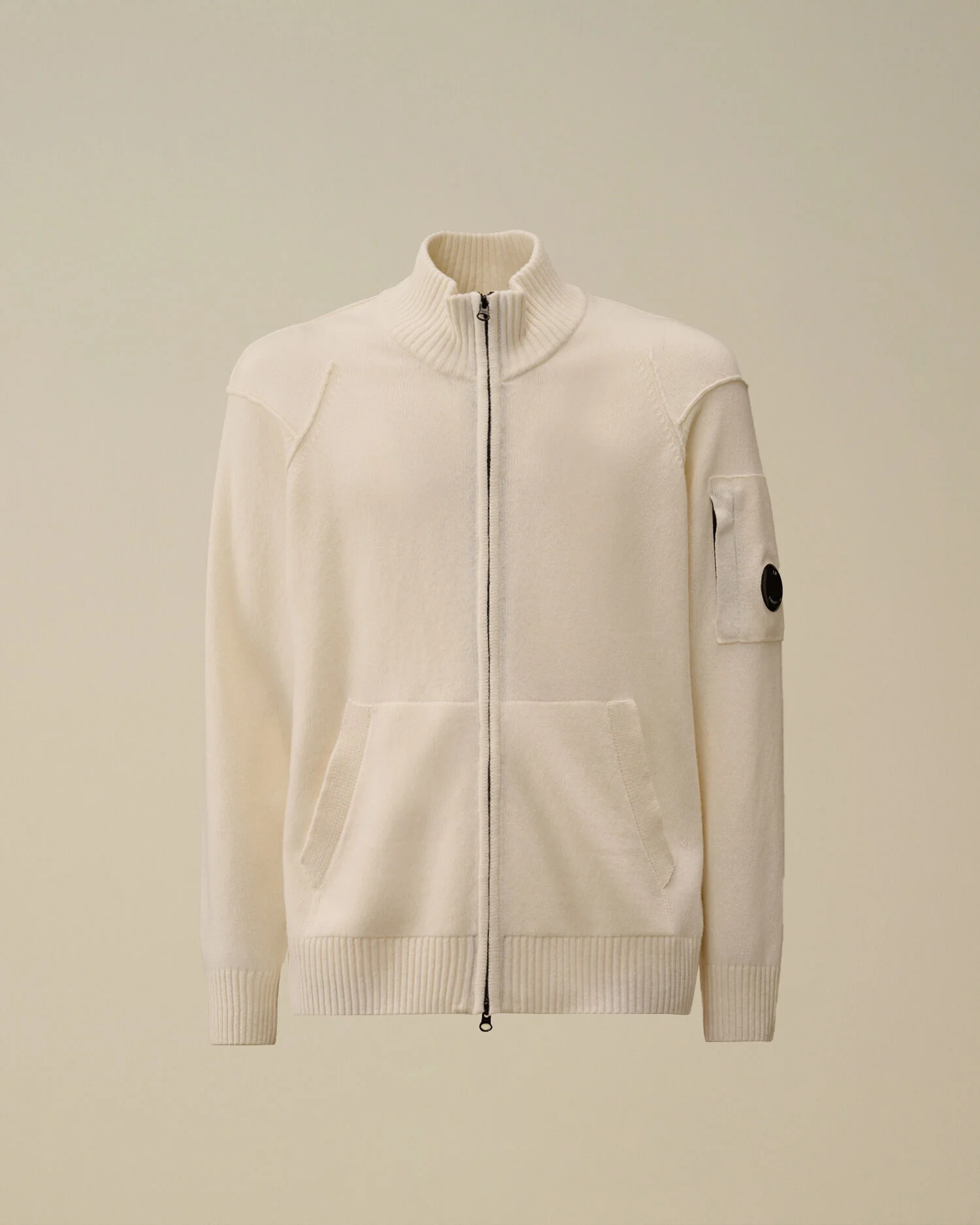 Full zip sweater crafted in Lambswool GRS. The Global Recycled Standard certifies the use of products in conformity with environmental and social criteria extended to all stages of the production chain. The knit features C.P. Company’s iconic Lens, contrast stitching and a kangaroo pocket. Finished with ribbed cuffs and hem. Gauge 7. Regular fit. - Ribbed neck - Two-way full zip fastening - Lens detail - Contrast stitching - Kangaroo pocket - Ribbed cuffs and hem - 7 Gauge knit - Regular fit CARE & COMPOSITION Care - Hand wash - Do not bleach - Do not tumble dry - Ironing maximum temperature 110°C - without steam - Dry cleaning in tetrachloroethene - mild process - Flat drip dry in the shade - Remove detachable accessories before washing - Dry inside out Composition - External fabric: 80% Wool, 20% Polyamide / Nylon SIZE & FITTING - Fits true to size, take your normal size - Model is 186 cm-6' 1" / 98-103 cm chest and is wearing a size L PRODUCT PASSPORT PRODUCT - Weaving: Italy - Dyeing: Italy - Confection: Moldova - Product contains at least 50% of recycled material PACKAGING - Minimum percentage of recycled materials 70%