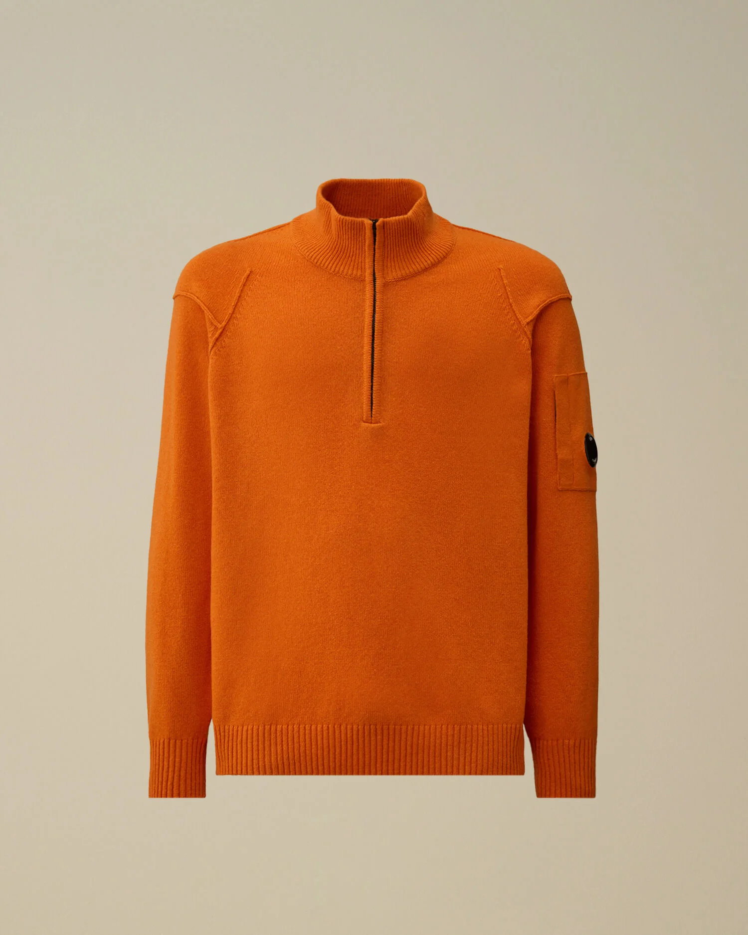 Half zip sweater crafted in Lambswool GRS. The Global Recycled Standard certifies the use of products in conformity with environmental and social criteria extended to all stages of the production chain. The knit features a ribbed neck, C.P. Company’s iconic Lens, contrast stitching, and ribbed cuffs and hem. Gauge 7. Regular fit. - Ribbed neck - Half zip fastening - Lens detail - Contrast stitching - Ribbed cuffs and hem - 7 Gauge knit - Regular fit CARE & COMPOSITION Care - Hand wash - Do not bleach - Do not tumble dry - Ironing maximum temperature 110°C - without steam - Dry cleaning in tetrachloroethene - mild process - Flat drip dry in the shade - Remove detachable accessories before washing - Dry inside out Composition - External fabric: 80% Wool, 20% Polyamide / Nylon SIZE & FITTING - Fits true to size, take your normal size - Model is 186 cm-6' 1" / 98-103 cm chest and is wearing a size L PRODUCT PASSPORT PRODUCT - Weaving: Italy - Dyeing: Italy - Confection: Moldova - Product contains at least 50% of recycled material PACKAGING - Minimum percentage of recycled materials 70%