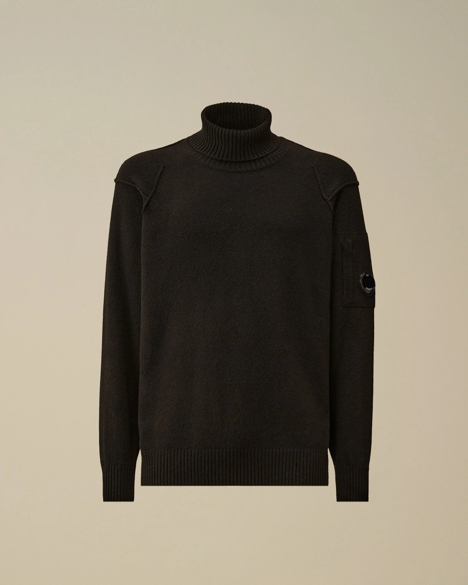 Turtleneck sweater crafted in Lambswool GRS*. The Global Recycled Standard certifies the use of products in conformity with environmental and social criteria extended to all stages of the production chain. The knit features C.P. Company’s iconic Lens, contrast stitching, ribbed cuffs and hem. Gauge 7. Regular fit.*Lambswool items in the colour Gauze White are not produced using GRS-certified yarn. - Ribbed turtleneck - Lens detail - Contrast stitching - Ribbed cuffs and hem - 7 Gauge knit - Regular fit CARE & COMPOSITION Care - Hand wash - Do not bleach - Do not tumble dry - Ironing maximum temperature 110°C - without steam - Dry cleaning in tetrachloroethene - mild process - Flat drip dry in the shade - Remove detachable accessories before washing - Dry inside out Composition - External fabric: 80% Wool, 20% Polyamide / Nylon SIZE & FITTING - Fits true to size, take your normal size - Model is 186 cm-6' 1" / 98-103 cm chest and is wearing a size L PRODUCT PASSPORT PRODUCT - Weaving: Italy - Dyeing: Italy - Confection: Moldova - Product contains at least 50% of recycled material PACKAGING - Minimum percentage of recycled materials 70%