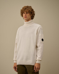 Turtleneck sweater crafted in Lambswool GRS*. The Global Recycled Standard certifies the use of products in conformity with environmental and social criteria extended to all stages of the production chain. The knit features C.P. Company’s iconic Lens, contrast stitching, ribbed cuffs and hem. Gauge 7. Regular fit.*Lambswool items in the colour Gauze White are not produced using GRS-certified yarn. - Ribbed turtleneck - Lens detail - Contrast stitching - Ribbed cuffs and hem - 7 Gauge knit - Regular fit CARE & COMPOSITION Care - Hand wash - Do not bleach - Do not tumble dry - Ironing maximum temperature 110°C - without steam - Dry cleaning in tetrachloroethene - mild process - Flat drip dry in the shade - Remove detachable accessories before washing - Dry inside out Composition - External fabric: 80% Wool, 20% Polyamide / Nylon SIZE & FITTING - Fits true to size, take your normal size - Model is 186 cm-6' 1" / 98-103 cm chest and is wearing a size L PRODUCT PASSPORT PRODUCT - Weaving: Italy - Dyeing: Italy - Confection: Moldova - Product contains at least 50% of recycled material PACKAGING - Minimum percentage of recycled materials 70%