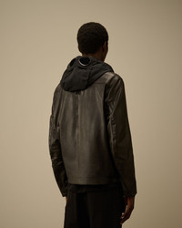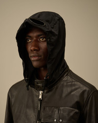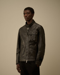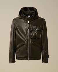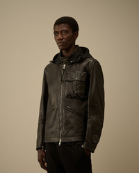 Mille jacket crafted in premium cowhide leather, combining durability with a refined finish. The jacket features C.P. Company’s iconic Goggle hood, detachable and adjustable, along with an adjustable snap collar. Hidden two-way full zip fastening. Equipped with chest flap snap pockets, side zip pockets, and a Lens detail on the left wrist. Complete with adjustable zip cuffs and side adjusters. Regular fit. - Detachable and adjustable Goggle hood - Adjustable snap collar - Hidden two-way full zip fastening - Chest flap snap pockets - Side zip pockets - Lens detail on left wrist - Adjustable zip cuffs - Side adjusters - Regular fit CARE & COMPOSITION Care - Do not wash - Do not bleach - Do not tumble dry - Do not iron - Do not dry clean - Wash in professional laundry for leather - Remove detachable accessories before washing - Wipe clean with a damp cloth or sponge Composition - Lining: 100% Cotton - Secondary fabric: 66% Polyester, 34% Polyamide / Nylon - Secondary lining: 100% Viscose / Rayon - Leather: Cow leather (Bos taurus) SIZE & FITTING - Fits true to size, take your normal size - Model is 186 cm-6' 1" / 98-103 cm chest and is wearing a size L PRODUCT PASSPORT PRODUCT - Weaving: Italy - Dyeing: Italy - Confection: Italy PACKAGING - Minimum percentage of recycled materials 70%
