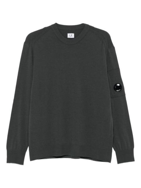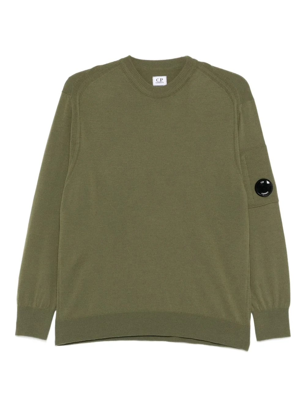 lens-detail crew-neck sweater Highlights - Olive green - Crew neck - Long sleeve - Signature lens detail - Ribbed hem and cuffs - C.p. company suggests removing any detachable accessories before washing. Imported Composition Virgin Wool 88%, Polyester 12% Washing instructions Read Manufacturer Guidelines