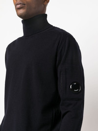 Lens-detail roll-neck jumper Highlights - Midnight blue - Virgin wool blend - Knitted construction - Signature lens detail - Roll neck - Long sleeves - Sleeve patch pocket - Straight hem - C.p. company suggests removing any detachable accessories before washing. Made in Italy Composition Virgin Wool 88%, Polyester 12% SIZE & FIT Model measurements Height 6 ft 2 in(1.88 m) Bust/Chest 35.03 in(89 cm) Hips 35.82 in(91 cm) Waist 27.95 in(71 cm) FittingInformation Designed for a relaxed fit, this piece allows for comfort and movement when worn Made with a midweight knit, this piece offers some stretch This piece fits true to size – take your usual size Washing instructions Hand Wash