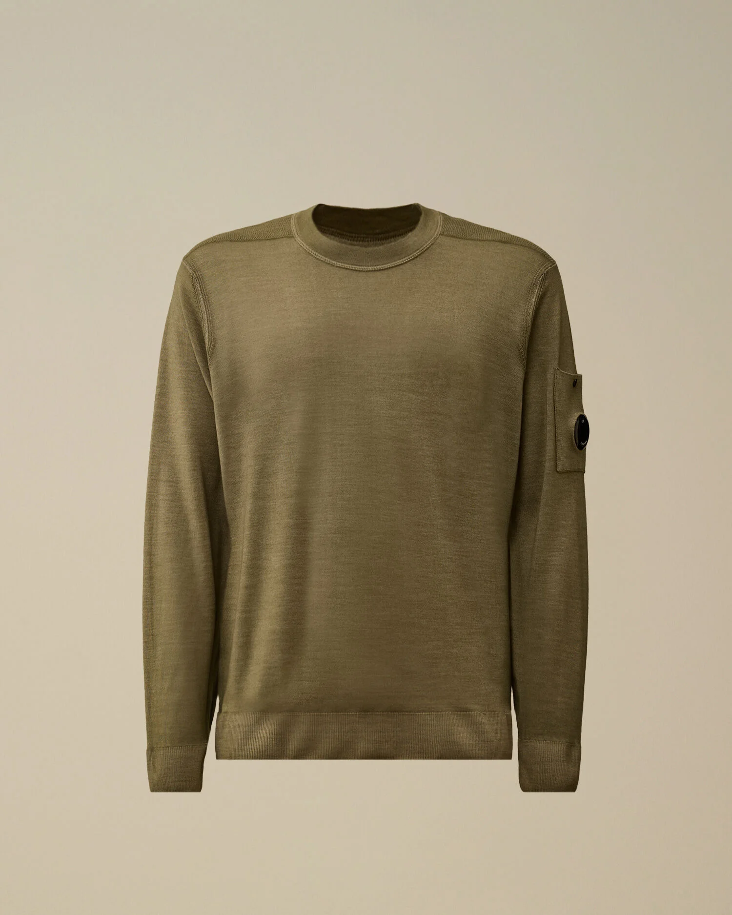 Crewneck sweater crafted in merino wool. The Fast Dyed process prevents the colour from penetrating uniformly into the fibre, creating a melange effect. The knit features C.P. Company’s iconic Lens, ribbed cuffs and hem. Finished with contrast stitching at the armholes and grid-knit panels on the shoulders. Gauge 12. Regular fit. - Ribbed crewneck - Lens detail - Armholes contrast stitching - Shoulders grid-knit panels - Ribbed cuffs and hem - Fast dyed - 12 Gauge knit - Regular fit CARE & COMPOSITION Care - Hand wash - Do not bleach - Do not tumble dry - Ironing maximum temperature 110°C - without steam - Dry cleaning in tetrachloroethene - mild process - Flat drip dry in the shade - Fabric may release color - wash separately and inside out - Remove detachable accessories before washing - Dry inside out Composition - External fabric: 100% Wool SIZE & FITTING - Fits true to size, take your normal size - Model is 186 cm-6' 1" / 98-103 cm chest and is wearing a size L PRODUCT PASSPORT PRODUCT - Weaving: Italy - Dyeing: Romania - Confection: Moldova PACKAGING - Minimum percentage of recycled materials 70%