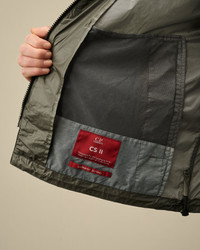 Jacket crafted in CS II, an RFD (ready for dye) transparent polyurethane membrane applied to a nylon surface. Seams and dye-resistant areas give the garment a light-dark effect. Garment dyed anti-drop treated. Lens detail. Regular fit. - Classic collar with contrast side on reverse - Hidden two-way zip fastening with flap snap closure - Side flap snap pockets - Lens detail - Adjustable snap cuffs - Garment dyed - Regular fit CARE & COMPOSITION CARE - Wash max 30°C - Mild process - Do not bleach - Do not tumble dry - Ironing maximum temperature 110°C - without steam - Do not dry clean - Line dry - Wash separately - Wash inside out - Iron with a cloth between - Remove detachable accessories before washing - Do not expose the garment to direct sunlight or artificial light COMPOSITION - External fabric: 100% Polyamide / Nylon - Lining: 100% Polyamide / Nylon - Coating: 100% Polyurethanic resin - Secondary lining: 100% Polyamide / Nylon SIZE & FITTING - Fits true to size, take your normal size - Model is 186 cm-6' 1" / 98-103 cm chest and is wearing a size L