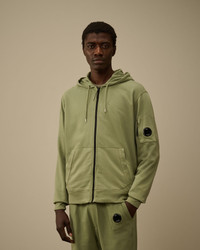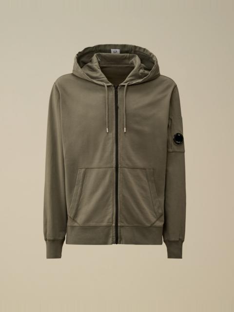 Full zip hooded sweatshirt crafted in lightweight brushed fleece. The soft, breathable fabric ensures comfort and ease of movement. The sweatshirt features an adjustable hood, and C.P. Company’s iconic Lens. Finished with ribbed cuffs and hem. Garment dyed. Regular fit. - Adjustable hood - Full zip fastening - Lens detail - Ribbed cuffs and hem - Garment dyed - Regular fit CARE & COMPOSITION Care - Wash max 30°C - Mild process - Do not bleach - Do not tumble dry - Ironing maximum temperature 110°C - without steam - Do not dry clean - Flat dry in the shade - Wash separately - Wash inside out - Iron inside out - Do not iron decorations - Remove detachable accessories before washing - Dry inside out - Do not expose the garment to direct sunlight or artificial light Composition - External fabric: 100% Cotton SIZE & FITTING - Fits true to size, take your normal size - Model is 186 cm-6' 1" / 98-103 cm chest and is wearing a size L PRODUCT PASSPORT PRODUCT - Weaving: Italy - Dyeing: Italy - Confection: Italy PACKAGING - Minimum percentage of recycled materials 70%
