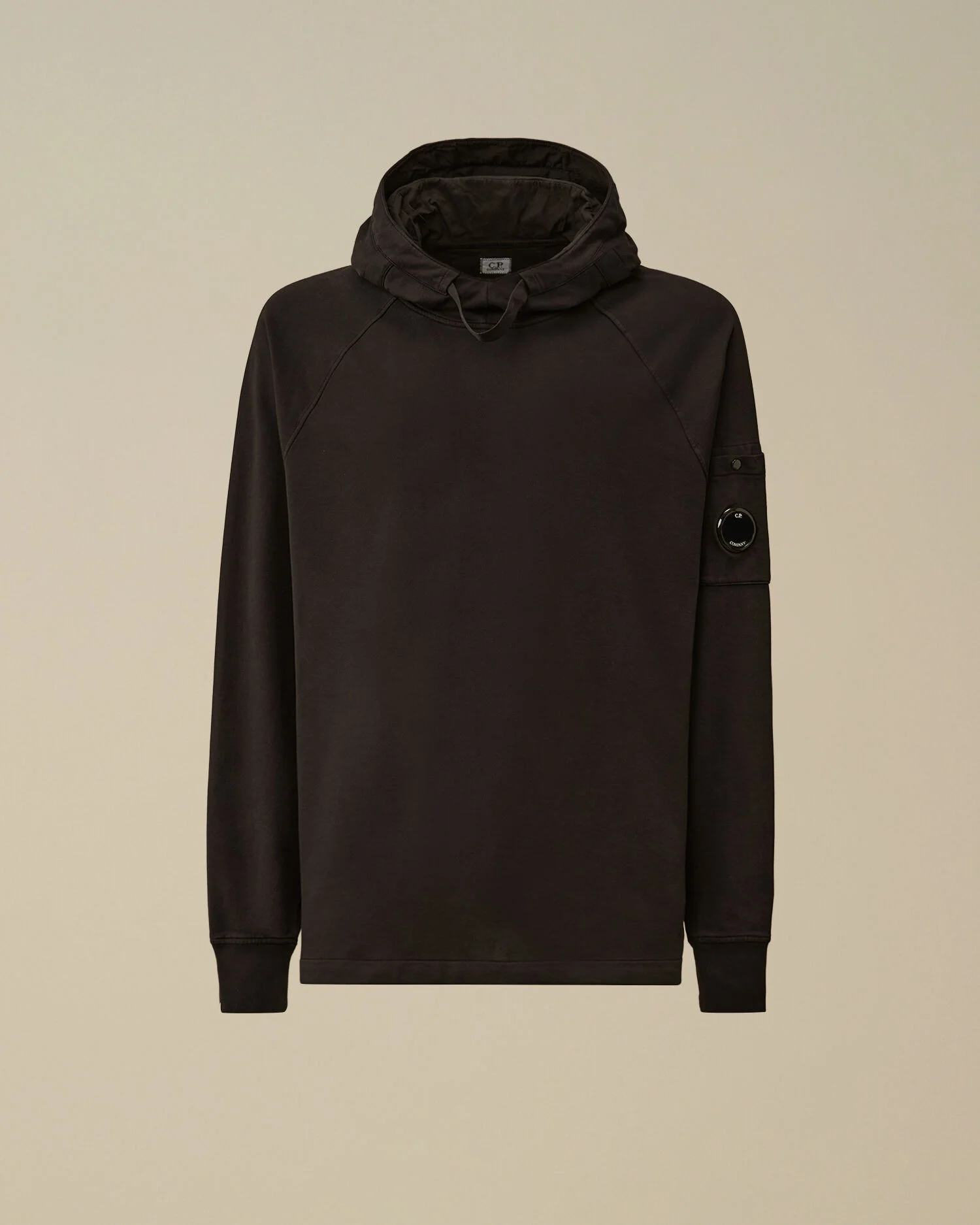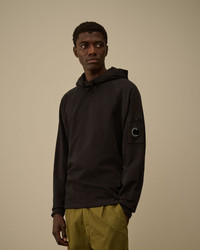 Hooded sweatshirt crafted in lightweight brushed fleece. The soft, breathable fabric ensures comfort and ease of movement. The sweatshirt features an adjustable hood with a front drawstring, C.P. Company’s iconic Lens, and ribbed cuffs. Finished with raglan sleeves and adjustable drawstring hem. Garment dyed. Regular fit. - Adjustable hood with front drawstring - Raglan sleeves - Lens detail - Ribbed cuffs - Adjustable drawstring hem - Garment dyed - Regular fit CARE & COMPOSITION Care - Wash max 30°C - Mild process - Do not bleach - Do not tumble dry - Ironing maximum temperature 110°C - without steam - Do not dry clean - Flat dry in the shade - Wash separately - Wash inside out - Iron inside out - Do not iron decorations - Remove detachable accessories before washing - Dry inside out - Do not expose the garment to direct sunlight or artificial light Composition - External fabric: 100% Cotton - Secondary fabric: 100% Cotton SIZE & FITTING - Fits true to size, take your normal size - Model is 186 cm-6' 1" / 98-103 cm chest and is wearing a size L PRODUCT PASSPORT PRODUCT - Weaving: Italy - Dyeing: Italy - Confection: Italy PACKAGING - Minimum percentage of recycled materials 70%
