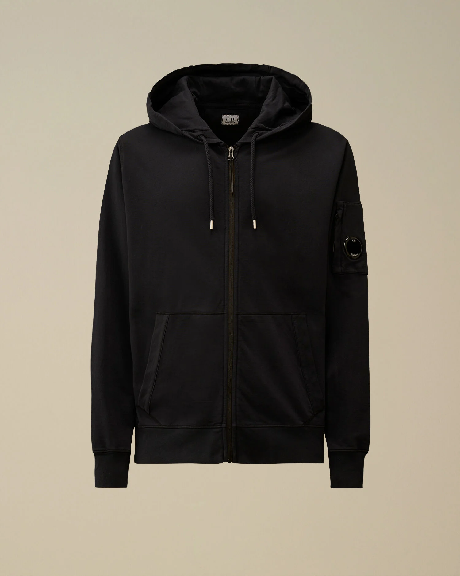 Hooded full zip sweatshirt crafted from lightweight cotton fleece, a soft and breathable fabric offering lasting comfort. The model features an adjustable drawstring hood and a kangaroo pocket. Completing the design are the iconic C.P. Company Lens on the sleeve pocket and ribbed cuffs and hem for a clean, structured finish. Garment dyed to achieve unique colour depth and tonal variations that evolve with time and wear. Made in Italy. Regular fit. - Adjustable drawstring hood - Full zip fastening - Lens detail - Kangaroo pocket - Ribbed cuffs and hem - Made in Italy - Garment dyed - Regular fit CARE & COMPOSITION Care - Wash max 30°C - Do not bleach - Do not tumble dry - Ironing maximum temperature 110°C - without steam - Do not dry clean - Flat dry in the shade - Wash separately - Wash inside out - Iron inside out - Do not iron decorations - Remove detachable accessories before washing - Dry inside out - Do not expose the garment to direct sunlight or artificial light Composition - External fabric: 100% Cotton SIZE & FITTING - Model is 186 cm-6' 1" and is wearing a size L - Fit: Regular PRODUCT PASSPORT PRODUCT - Weaving: Italy - Dyeing: Italy - Confection: Italy PACKAGING - Minimum percentage of recycled materials 70%