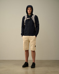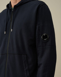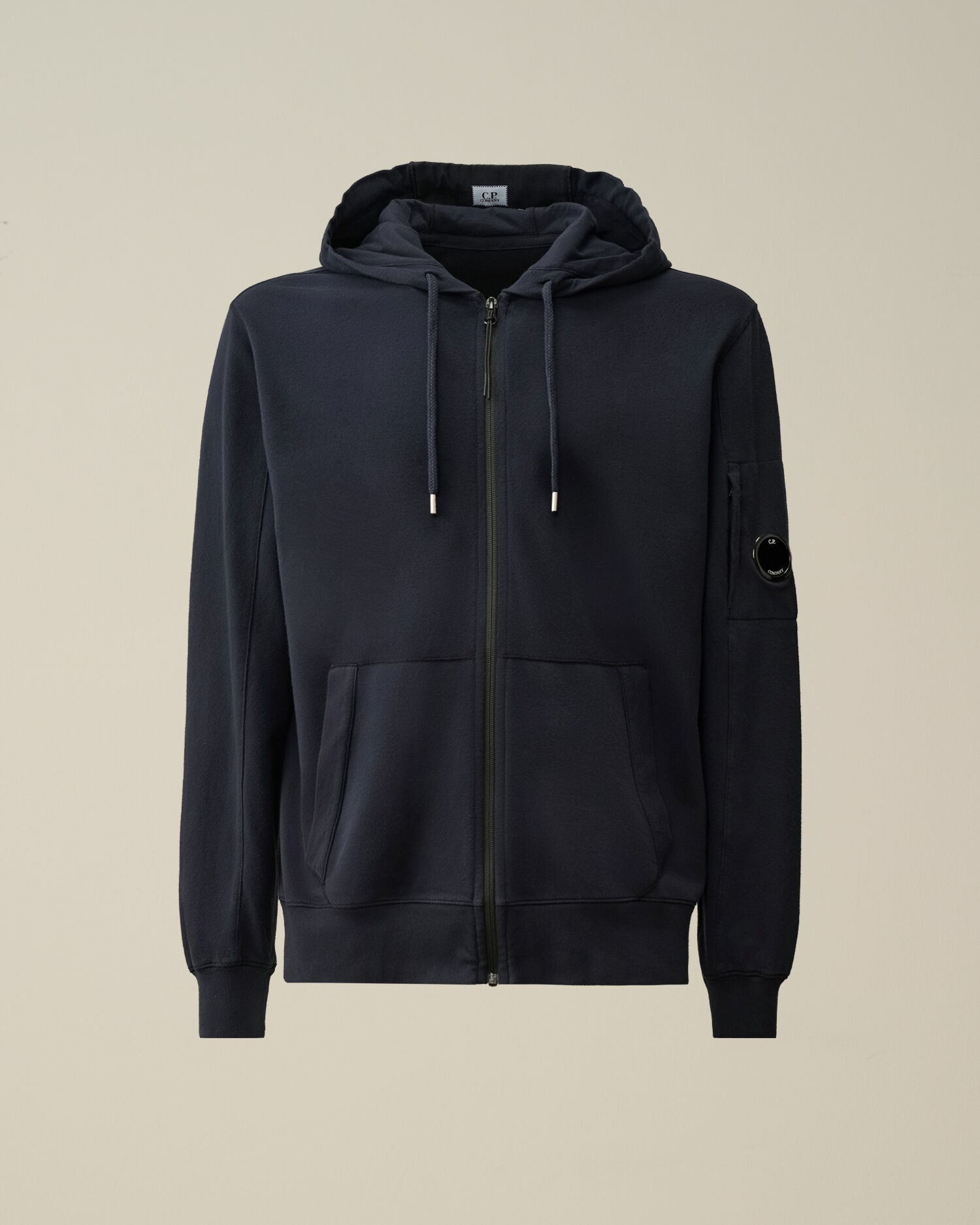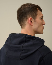 Hooded sweatshirt cut with a stand-up collar, full zip fastening, a kangaroo pocket and ribbed hem and cuffs. The garment is completed with an adjustable hood with Lens detail on the sleeve pocket. Made with a lightweight cotton fleece and garment dyed for an increased chromatic depth and intensity throughout the piece. Regular fit. - Stand-up collar - Adjustable hood - Full zip fastening - Lens detail - Ribbed cuffs and hem - Kangaroo pockets - Garment dyed - Regular fit CARE & COMPOSITION CARE - Wash max 30°C - Do not bleach - Do not tumble dry - Ironing maximum temperature 110°C - without steam - Do not dry clean - Wash separately - Wash inside out - Iron inside out - Do not iron decorations - do not expose to heat - Remove detachable accessories before washing - Dry inside out COMPOSITION - External fabric: 100% Cotton SIZE & FITTING - Fits true to size, take your normal size - Model is 188 cm-6' 2" / 98-103 cm chest and is wearing a size L