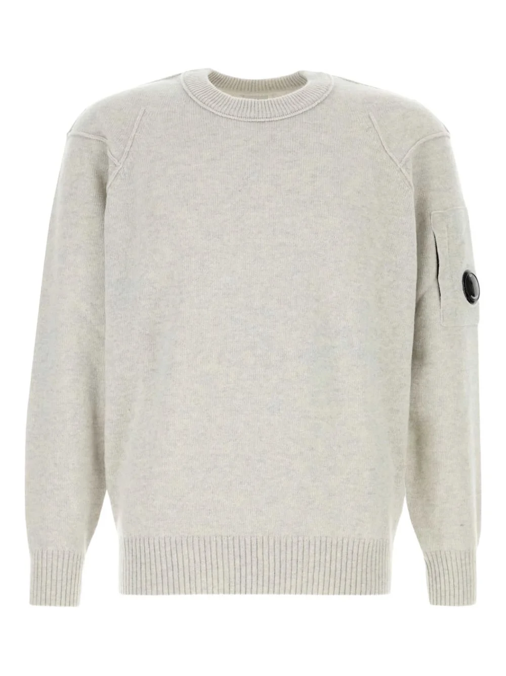 pocket sweater Highlights - Light grey - Wool blend - Crew neck - Zip fastening pocket detail - Ribbed hem - Signature lens detail Imported Composition Wool 80%, Nylon 20%