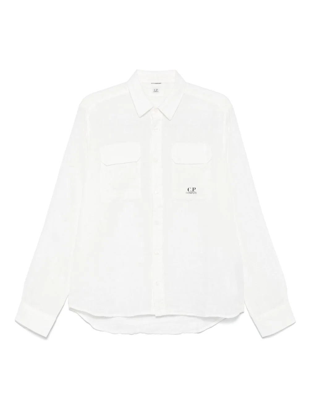linen shirt Highlights - White - Concealed front button fastening - Two chest flap pockets - Logo print at the chest Imported Composition Linen/Flax 100% SIZE & FIT Model measurements Height 6 ft 2 in(1.87 m) Bust/Chest 38.18 in(97 cm) Hips 36.61 in(93 cm) Waist 29.13 in(74 cm) FittingInformation Designed to be unstructured, offering a loose fit throughout Made from a midweight non-stretch fabric