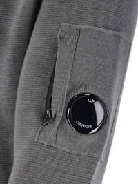 logo-detail sweater Highlights - Grey - Knitted texture - Round neck - Long sleeves - Sleeve pocket - Zip detail - C.p. company suggests removing any detachable accessories before washing. Imported Composition Fabric 100% Washing instructions Read Manufacturer Guidelines