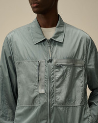 Full zip overshirt crafted in Chrome-R, a 100% regenerated, shiny multifilament nylon. Made from production scraps reprocessed into a new fibre. Global Recycled Standard certified (GRS). Garment dyed anti-drop treated. Lens detail. Regular fit. - Classic collar - Two-way full zip fastening - Chest zip pockets with embroidered logo detail - Side flap snap pockets - Adjustable button cuffs - Adjustable drawstring hem - Garment dyed - Regular fit CARE & COMPOSITION CARE - Wash max 30°C - Mild process - Do not bleach - Do not tumble dry - Ironing maximum temperature 110°C - without steam - Do not dry clean - Line dry - Wash inside out COMPOSITION - External fabric: 100% Polyamide / Nylon SIZE & FITTING - Fits true to size, take your normal size - Model is 186 cm-6' 1" / 98-103 cm chest and is wearing a size L