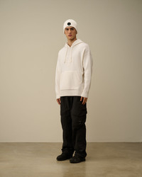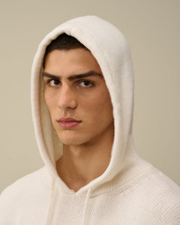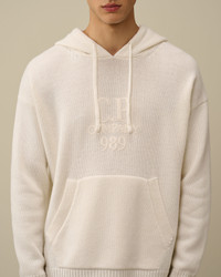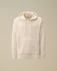 Hooded knit crafted in Lambswool GRS. The Global Recycled Standard certifies the use of products in conformity with environmental and social criteria extended to all stages of the production chain. Gauge 3. - Adjustable hood - Kangaroo pocket - Chest embroidered logo detail - Ribbed cuffs and hem - 3 Gauge knit - Boxy fit CARE & COMPOSITION CARE - Hand wash - Do not bleach - Do not tumble dry - Ironing maximum temperature 110°C - without steam - Dry cleaning in tetrachloroethene - mild process - Flat drip dry in the shade - Do not iron decorations - Dry inside out COMPOSITION - External fabric: 80% Wool, 20% Polyamide / Nylon SIZE & FITTING - Fits true to size, take your normal size - Model is 186 cm-6' 1" / 98-103 cm chest and is wearing a size L