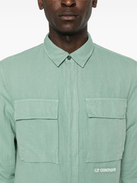 logo-embroidered long-sleeve shirt Highlights - Sea green - Cotton-linen blend - Twill weave - Embroidered logo to the front - Straight-point collar - Concealed front button fastening - Long sleeves - Press-stud fastening cuffs - Two chest flap pockets - Short side slits - Straight hem Imported Composition Cotton 51%, Linen/Flax 49% SIZE & FIT Model measurements Height 6 ft 2 in(1.87 m) Bust/Chest 36.41 in(92.5 cm) Hips 37 in(94 cm) Waist 29.52 in(75 cm) FittingInformation Designed for a regular fit, allowing for a comfortably loose fit throughout the body Made from a midweight non-stretch fabric This piece fits true to size – take your usual size