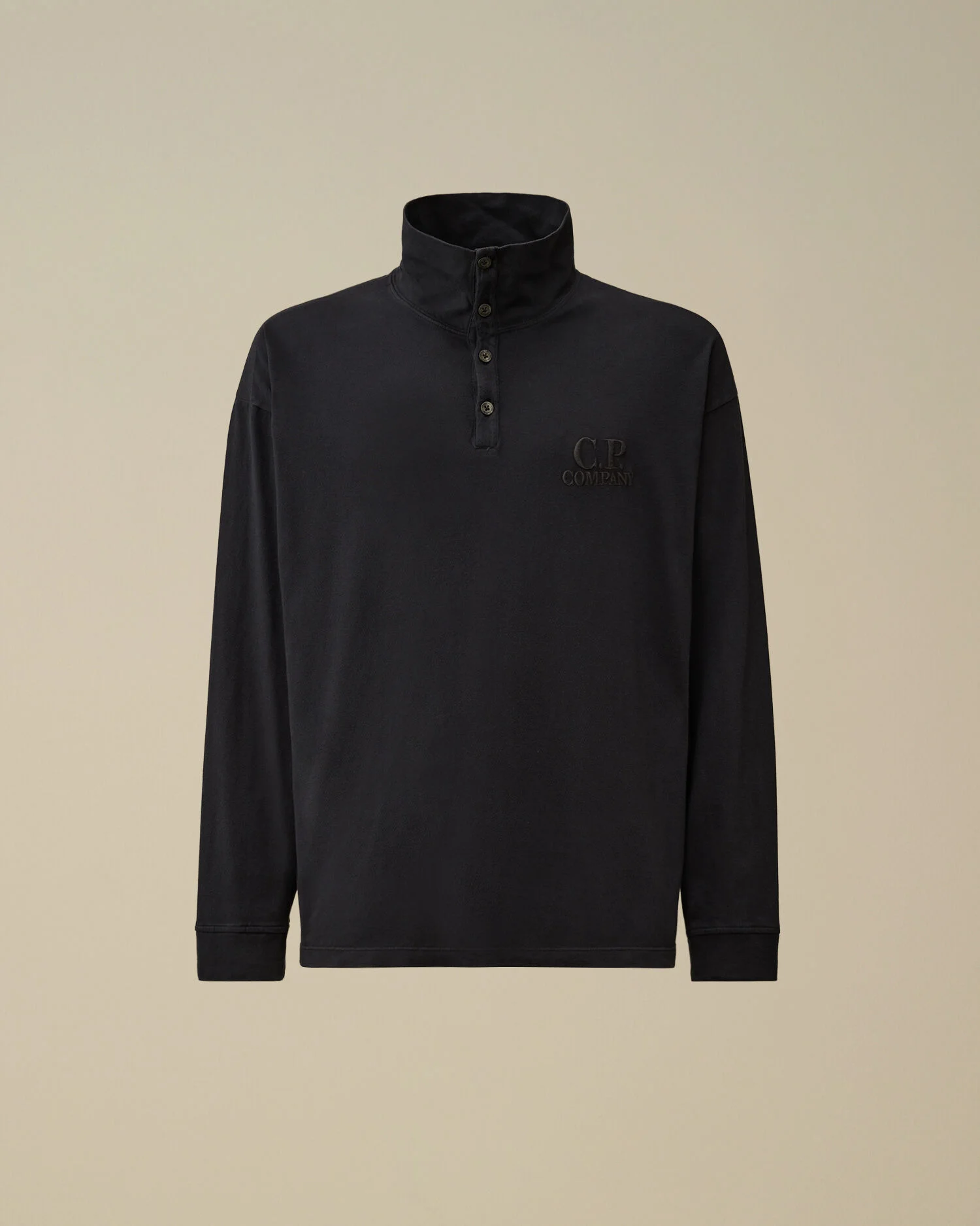 Long sleeve polo crafted in 20/1 jersey, a mid-weight cotton fabric. The polo features a stand-up collar with a four-button placket, a chest embroidered logo detail, and side vents. Garment dyed. Boxy fit. - Stand-up collar with four-button placket - Chest embroidered logo detail - Side vents - Garment dyed - Boxy fit CARE & COMPOSITION Care - Wash max 30°C - Mild process - Do not bleach - Do not tumble dry - Ironing maximum temperature 110°C - without steam - Do not dry clean - Flat dry in the shade - Wash separately - Wash inside out - Iron inside out - Do not iron decorations - Dry inside out - Do not expose the garment to direct sunlight or artificial light Composition - External fabric: 100% Cotton SIZE & FITTING - Fits true to size, take your normal size - Model is 186 cm-6' 1" / 98-100 cm chest and is wearing a size L PRODUCT PASSPORT PRODUCT - Weaving: Italy - Dyeing: Italy - Confection: Italy PACKAGING - Minimum percentage of recycled materials 70%