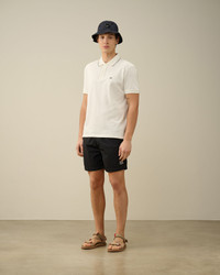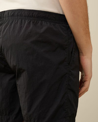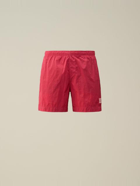 Knee-long swim shorts constructed with an elasticated drawstring waist, two hand pockets , inner mesh, and embroidered logo detail at front. Crafted from Chrome, a C.P. Company’s foundation woven multifilament nylon. This new version uses Econyl® regenerated nylon yarns, created through the upcycling of fishing nets. Garment dyed for an increased chromatic depth and intensity throughout. Regular fit. - Elasticated drawstring waistband - Slanted hand pockets - Embroidered logo detail - Inner mesh - Garment dyed - Regular fit CARE & COMPOSITION CARE - Wash max 30°C - Mild process - Do not bleach - Do not tumble dry - Do not iron - Do not dry clean - Wash inside out COMPOSITION - External fabric: 100% Polyamide / Nylon - Lining: 100% Polyamide / Nylon - Secondary fabric: 79% Cotton, 21% Polyamide / Nylon SIZE & FITTING - Fits true to size, take your normal size - Model is 188 cm-6' 2"/ 88-91 cm waist and is wearing a size 48