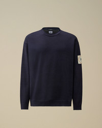 Crewneck knit crafted in Vanise indigo cotton. Outside indigo yarn, inside black cotton yarn. Applied British Sailor logo inspired by the brand's archives. Gauge 12. Regular fit. - Crewneck - Applied logo patch - Vanise - 12 Gauge knit - Regular fit CARE & COMPOSITION CARE - Wash max 30°C - Mild process - Do not bleach - Do not tumble dry - Ironing maximum temperature 110°C - without steam - Do not dry clean - Flat drip dry in the shade - Wash with similar colours - Wash inside out - Fabric may release color - wash separately and inside out - Do not expose the garment to direct sunlight or artificial light COMPOSITION - External fabric: 100% Cotton SIZE & FITTING - Fits true to size, take your normal size - Model is 186 cm-6' 1" / 98-103 cm chest and is wearing a size L