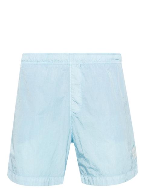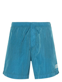 logo-patch swim shirts Highlights - Blue - Taffeta - Crinkled finish - Logo patch to the front - Mid-rise - Straight leg - Short side slits - Two diagonal pockets to the sides - Elasticated waistband with internal drawstring - Thigh-length - Mesh lining - Be mindful to try on swimwear over your own garments. Imported Composition Outer: Polyamide 100% Lining: Polyamide 100% Washing instructions Machine Wash