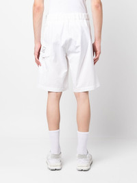 logo-print belted-waist shorts white cotton belted waist buckle fastening belt loops zip fly fastening side zip-fastening pocket knee-length logo print to the rear rear patch pocket Imported Composition Cotton 100% SIZE & FIT Model measurements Height 6 ft 3 in(1.91 m) Bust/Chest 37 in(94 cm) Hips 37.79 in(96 cm) Waist 28.34 in(72 cm) FittingInformation This piece fits true to size. We recommend you get your regular size Designed for a slim fit at the waist and loose over the leg Made with a mid-weight non-stretch fabric Washing instructions Machine Wash