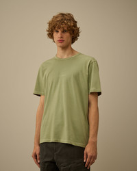 Short sleeve t-shirt crafted in 24/1 jersey, a medium-weight cotton fabric. The t-shirt features a crewneck and a chest printed logo detail. The Resist Dyed process uses direct dyes on garments pre-treated with cationic resin, creating an irregular color effect that enhances texture and details. Regular fit. - Crewneck - Chest printed logo detail - Resist dyed - Regular fit CARE & COMPOSITION Care - Wash max 30°C - Mild process - Do not bleach - Do not tumble dry - Ironing maximum temperature 110°C - without steam - Do not dry clean - Flat dry in the shade - Wash separately - Wash with similar colours - Wash inside out - Iron inside out - Do not iron decorations - Do not expose to heat - Dry inside out Composition - External fabric: 100% Cotton SIZE & FITTING - Fits true to size, take your normal size - Model is 186 cm-6' 1" / 98-103 cm chest and is wearing a size L PRODUCT PASSPORT PRODUCT - Weaving: Turkiye - Dyeing: Italy - Confection: Italy PACKAGING - Minimum percentage of recycled materials 70%